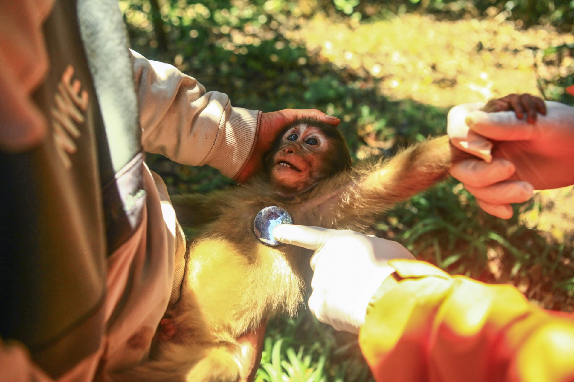 小猴子最乖巧,做所有体检项目,都乖乖地躺在工作人员怀里,大眼睛扑闪扑闪地好奇张望。