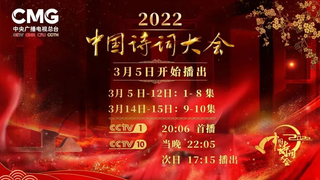 由中央广播电视总台联合教育部、国家语言文字工作委员会共同推出的《2022中国诗词大会》十期节目,从2022年3月5日起,在央视综合频道CCTV-1晚间黄金时段20点档连续播出。