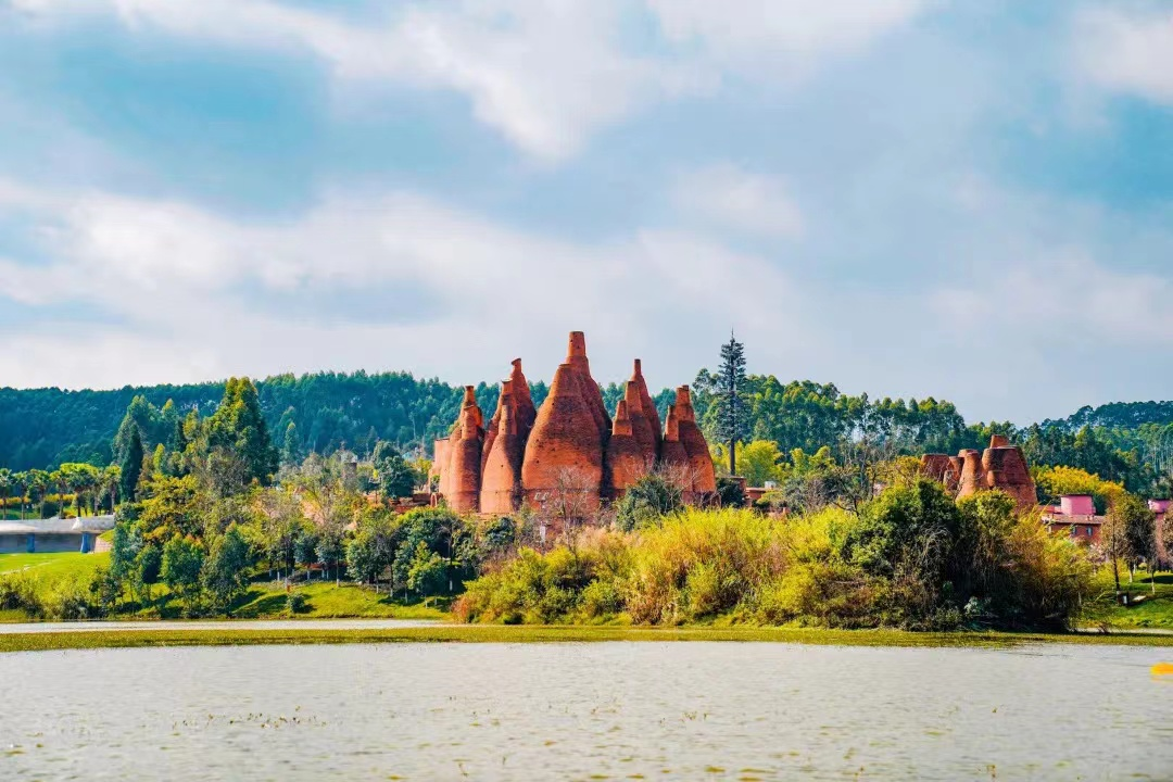 斜坡上朵朵开着的樱花为小镇装点了浪漫