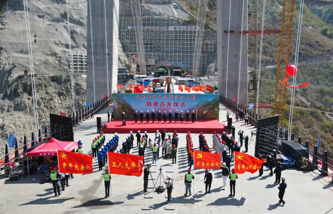 2021年11月,绿汁江特大桥首片钢箱梁架设成功。