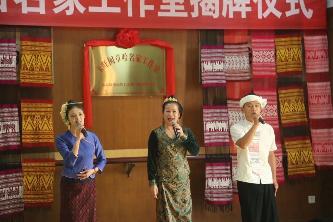 3月10日,西双版纳州民族文化工作团举行玉旺囡章哈名家工作室挂牌仪式。仪式上,州人民政府副州长赵家信、州文旅局领导、州文联领导、章哈协会专家及玉旺囡共同揭牌,现场举行了章哈传统拜师仪式并进行章哈表演。