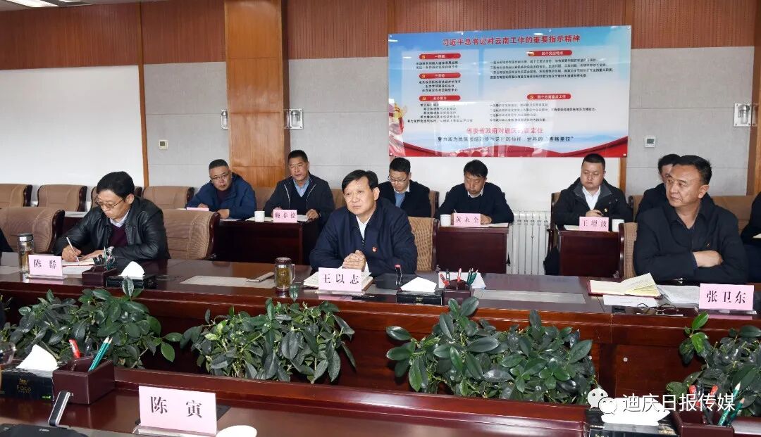 王以志对陈寅一行的到来表示欢迎。他代表州委、州政府对中国旅游集团有限公司一直以来对迪庆州脱贫攻坚及推进乡村振兴、文化旅游产业高质量发展给予“真金白银”的投入和真情帮扶支持表示感谢。他希望中国旅游集团有限公司一如既往地给予迪庆帮扶和支持,在下一步工作中结合各自优势,进一步加大合作力度,助推全州脱贫攻坚成果巩固拓展同乡村振兴有效衔接,特别是为迪庆文旅产业高质量发展给予帮扶合作。双方要在现有帮扶合作基础上成立工作专班,进一步深化合作机制、务实合作事宜,推进共同发展。