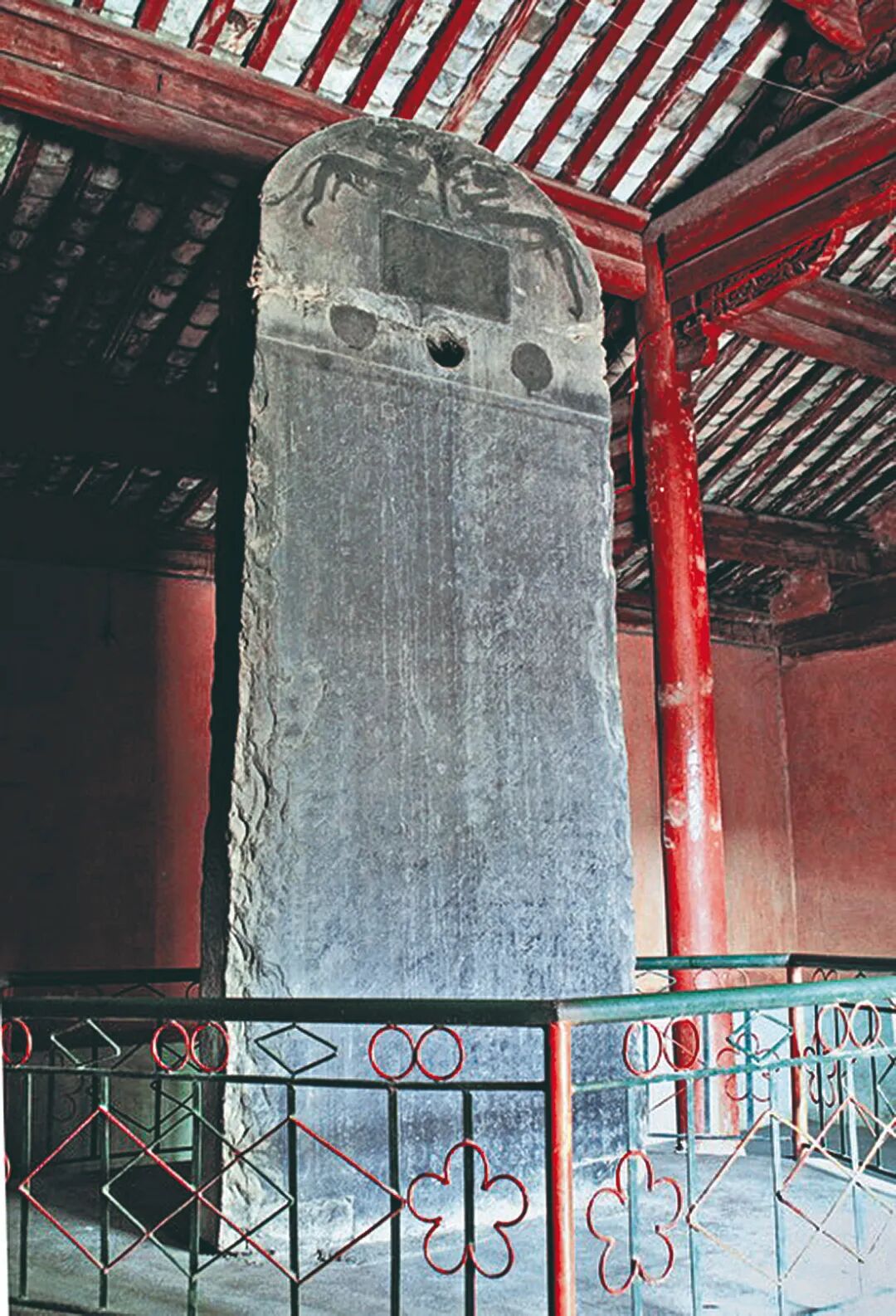 大爨碑立于公元458年,为南朝宁州刺史爨龙颜的墓碑。碑额上部浮雕青龙、白虎、朱雀,左右刻日月。碑高3.38米,上宽1.35米,下宽1.46米,厚0.25米。碑阳面书24行,每行45字,追溯了滇东北爨氏家族渊源和爨龙颜建立的不朽功绩。
