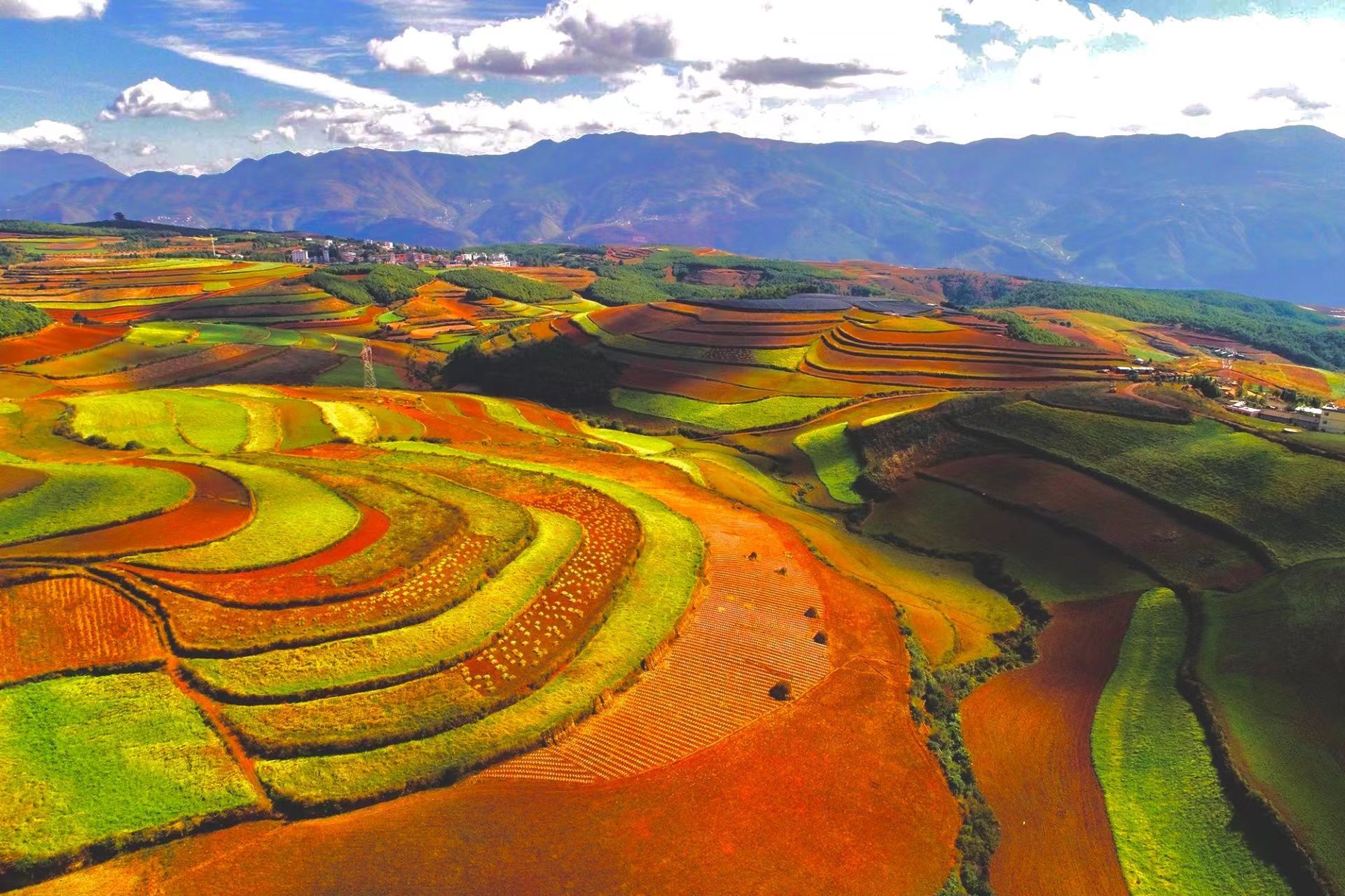 东川土地如同被打翻的调色板