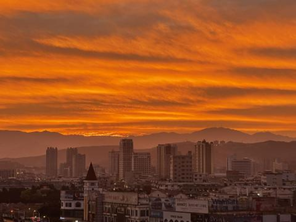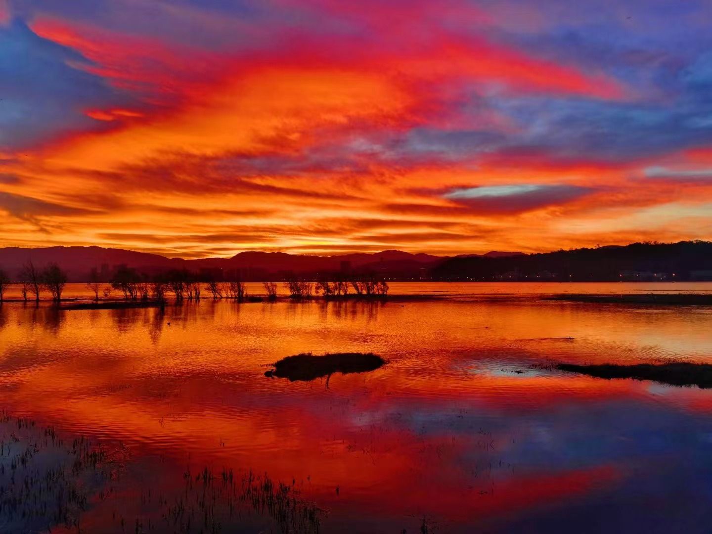 红霞与洱海交相辉映
