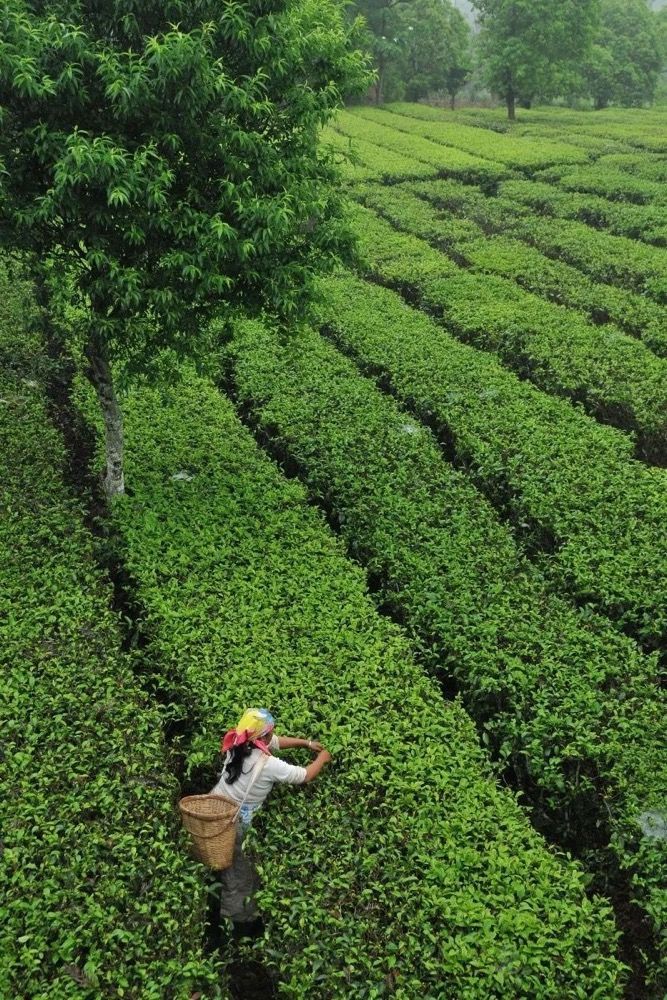 在茶尖的青绿中