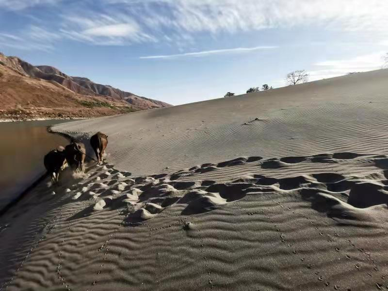 (追着晚霞,赤足走在软绵的沙滩上,享受别样的春日好风景)