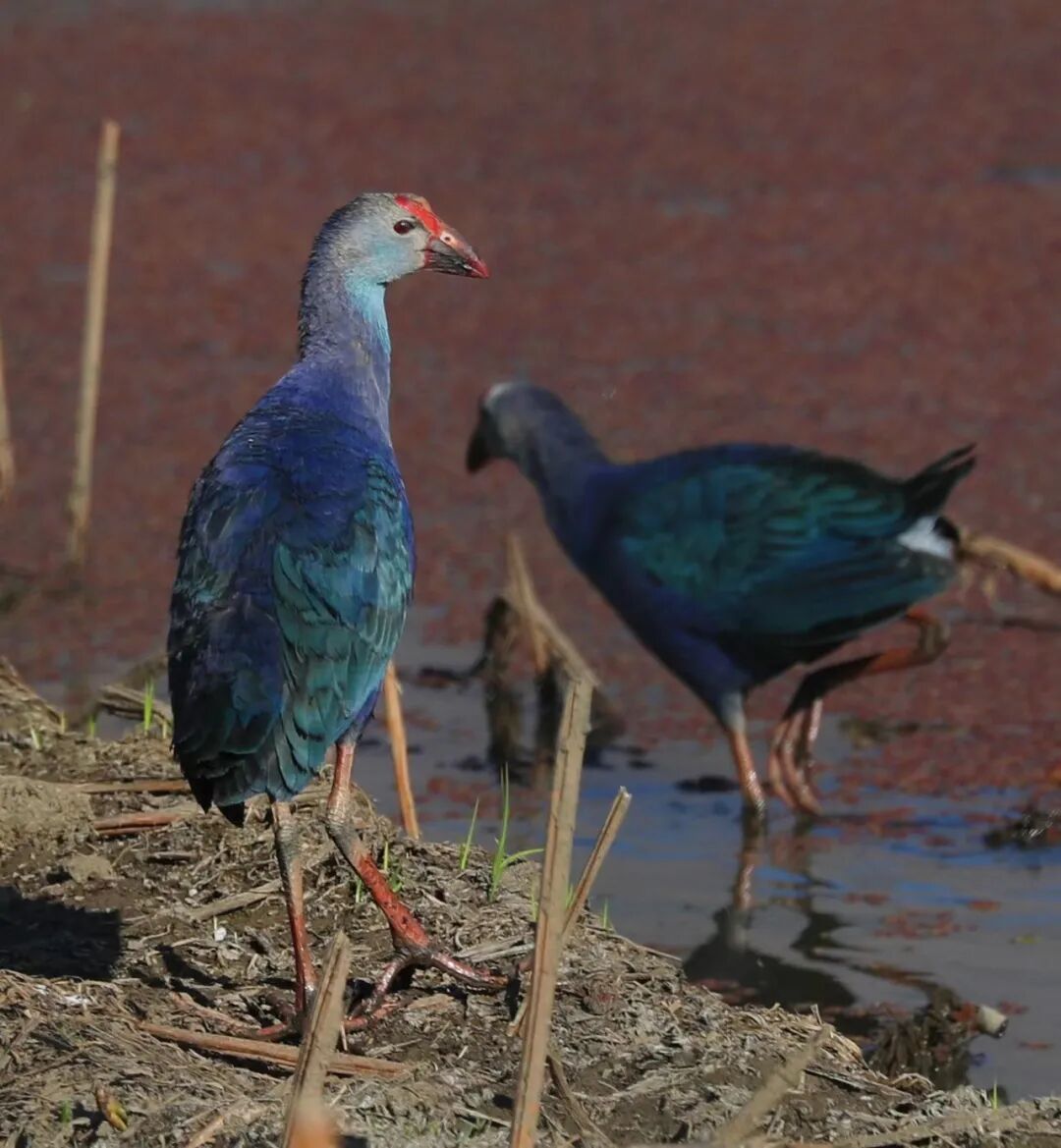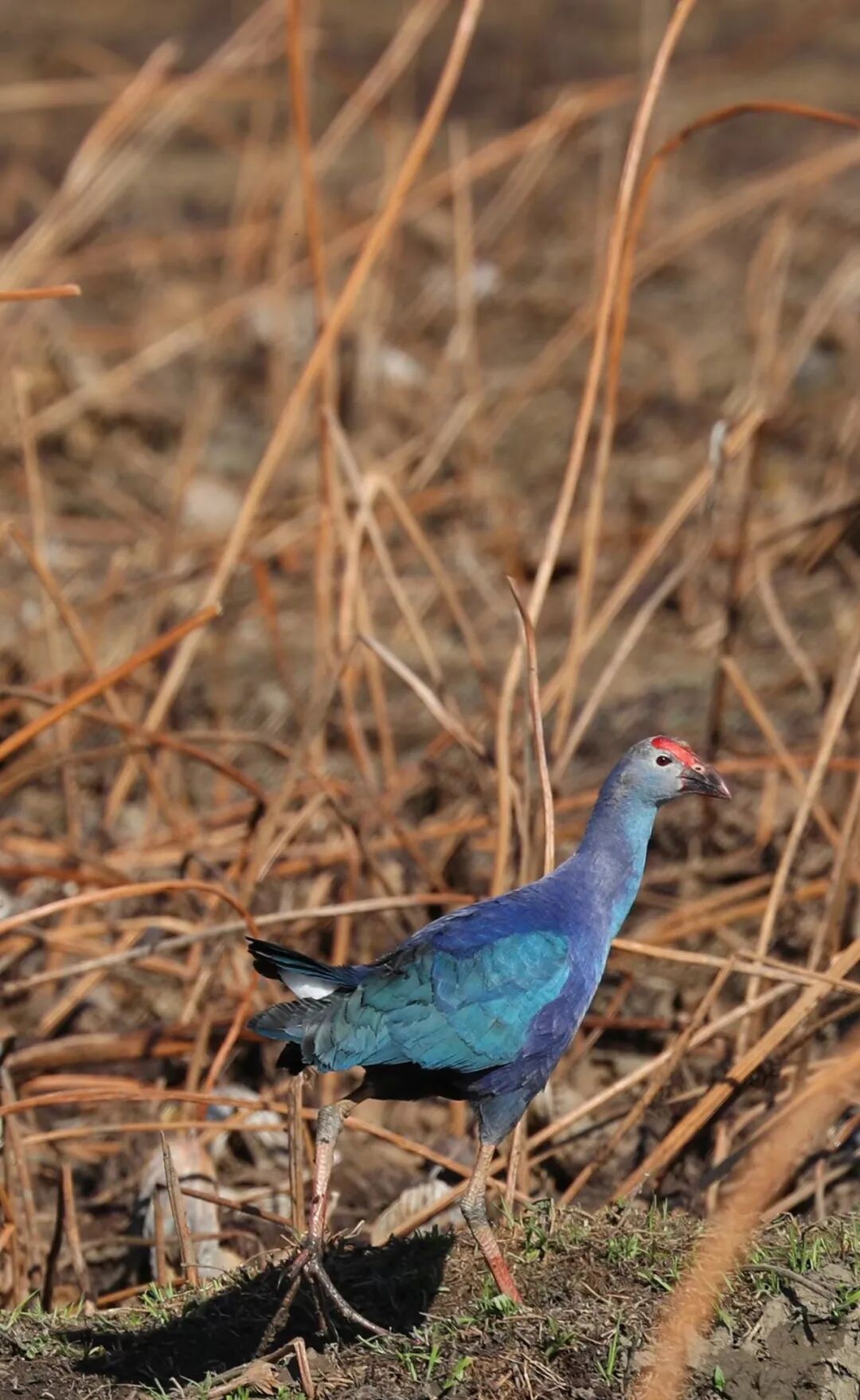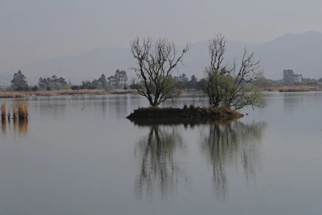 草海的浅滩上,细嫩的草尖破土而出,紫水鸡迈着优雅的步子,闲适地享受着春日暖阳。鲜艳的羽毛熠熠生辉,灵动的眼神顾盼生姿,仿若归隐而居的文士,风度翩翩。水面上,半空中,尚未离去的候鸟依旧翱翔飞舞,为这春日草海,鸣唱着动听的赞歌。