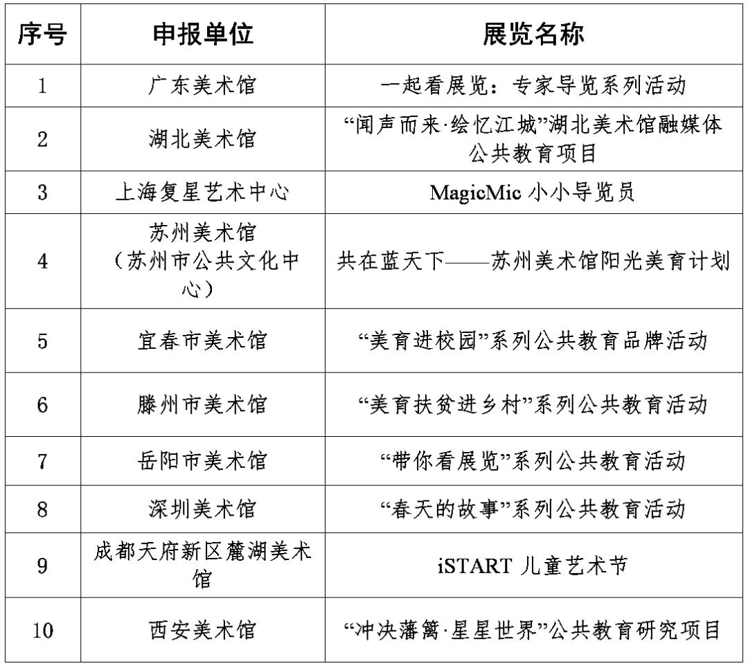3月17日,文化和旅游部官网公示2020-2021年度全国美术馆优秀项目。此次按照《文化和旅游部办公厅关于开展2020—2021年度全国美术馆优秀项目评选工作的通知》(办艺发〔2021〕223号)要求,艺术司组织专家对申报项目进行评选,共评选出: