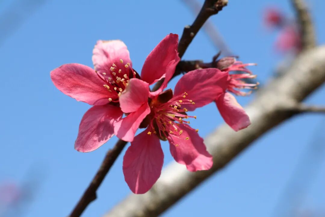 进入集镇仿佛闯入一个粉色的童话世界,一树树娇艳欲滴的粉花山扁豆压满枝头,不时有零星的几朵低垂着,好似有心事的少女,向过往的游人诉说”她“的纸短情长,配上湛蓝的天空和阳光滤镜,成为了德化的别样浪漫……两百亩桃花和一百多亩油菜花也竞相绽放,方寸之间,都是藏不住的春光。