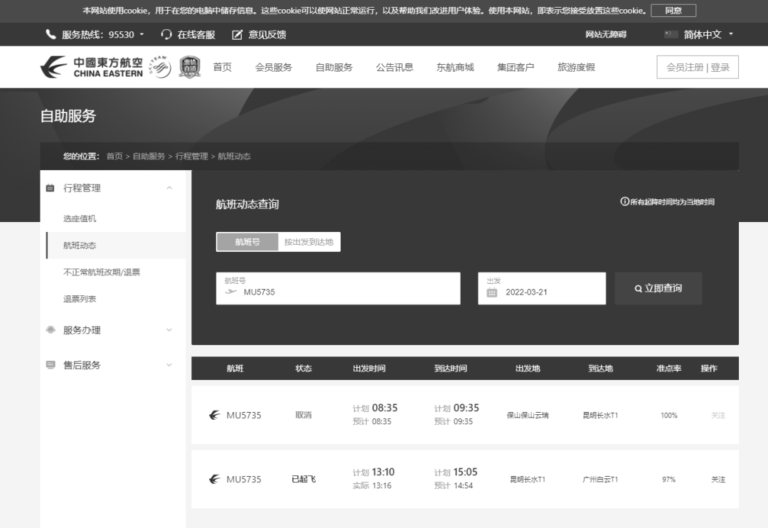 据悉,该航班航班号为MU5735,13:15分由昆明长水机场起飞,原定14:52到达广州白云机场。