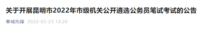按照工作安排,经研究,决定于2022年3月26日(周六)开展昆明市2022年市级机关公开遴选公务员笔试考试。