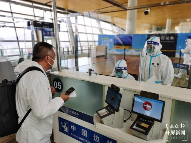 在登机口区域完成海关部门的健康申报、核酸采样、测量体温等工作后,直行进入入境边防检查办理手续。