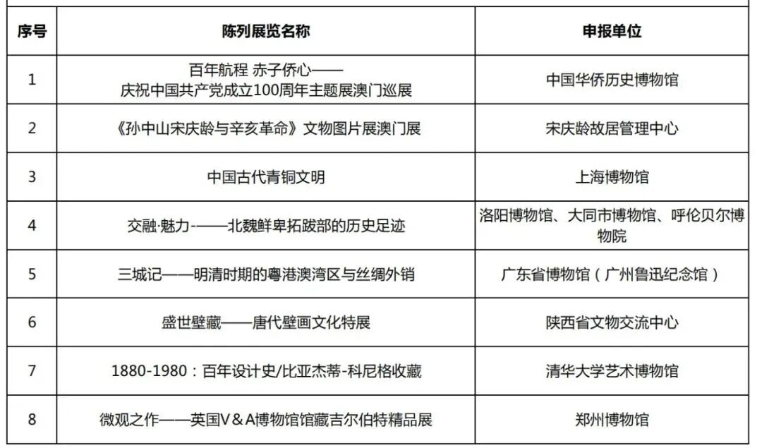 根据《关于开展第十九届(2021年度)全国博物馆十大陈列展览精品推介活动的函》和《全国博物馆十大陈列展览精品推介办法》的相关要求,推介活动办公室对申报材料进行了资格审核,申报项目名录附后。