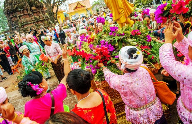 西双版纳泼水节,是傣族的新年,也是西双版纳最隆重的传统节日之一,在傣历四月中旬举行。传统泼水节为期3天,每一天的内容都不同,有赕佛、堆沙、赶摆、放高升、赛龙舟、斗鸡、放水灯、放孔明灯、花车巡游、泼水等丰富多彩的活动。