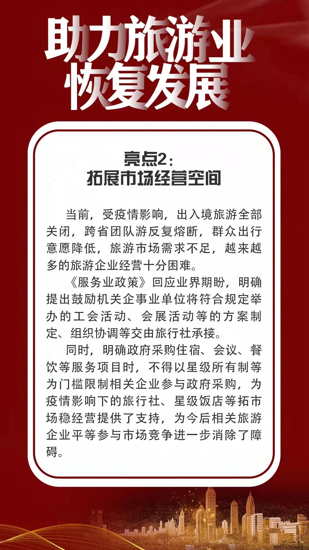 3月31日,云南省落实促进工业经济平稳增长若干政策和促进服务业领域困难行业恢复发展若干政策新闻发布会在昆明召开。记者从会上获悉,近日出台的《关于落实促进服务业领域困难行业恢复发展若干政策》(以下简称《服务业政策》)将旅游业作为重点帮扶行业,有针对性地推出帮扶政策措施,这些政策措施对缓解旅游企业困难、提振旅游从业者信心、助力旅游业恢复发展提供了有力支持。