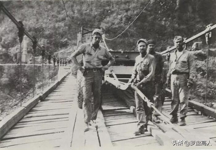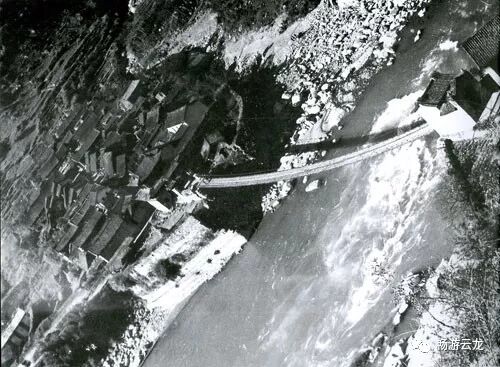 (1938年的功果桥,右侧是通行人和马的老桥。)