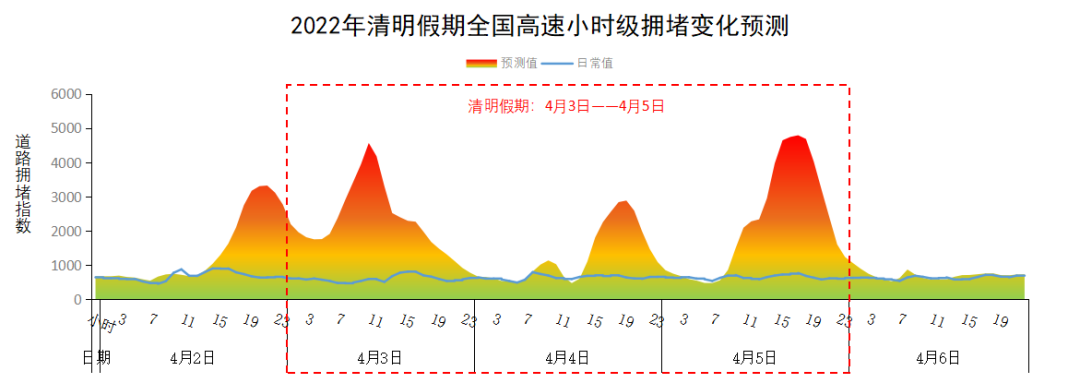 清明假期第一天9-12时,第三天16-19时可能会出现拥堵高峰,如图3所示。