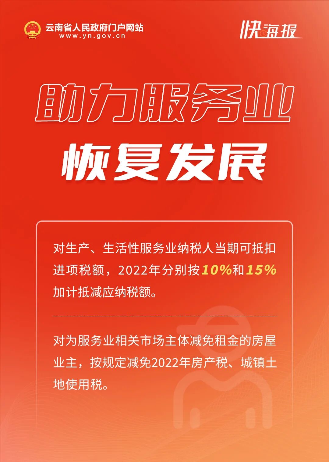 为落实党中央、国务院和国家税务总局、省委、省政府关于助企纾困的组合式税费支持政策和办税缴费服务举措,充分发挥税务职能作用,服务云南经济社会发展,近日,国家税务总局云南省税务局印发《进一步加大政策落实和税务服务力度 全力支持云南经济社会发展的若干措施》(以下简称《若干措施》),聚焦支持工业经济平稳增长、助力服务业恢复发展、帮助小微企业纾困减负等方面推出了一系列税收措施。
