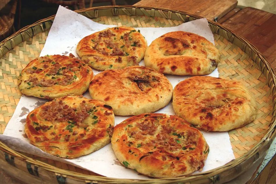 被称为“东方披萨”的喜洲粑粑,表皮酥脆,内里松软,口感层次丰富。口味上咸、甜任选,咸的一定要撒葱末和肉末,浓香扑鼻;甜的一定要选玫瑰糖,香甜中带着玫瑰花香,引人沉醉。