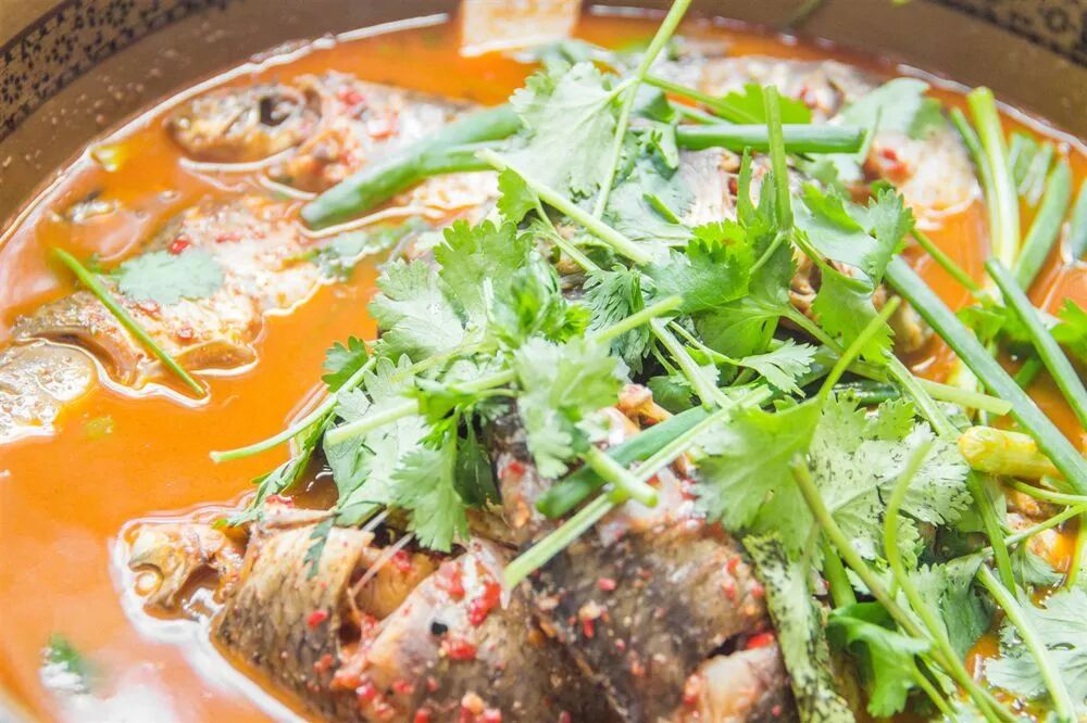 辣椒面、青辣椒、葱段、姜丝、酸木瓜,加上大理人喜爱的鲫鱼,煮出一锅红彤彤的酸辣鱼来。还没出锅,酸木瓜的味道一挥发,唾液便控制不住地开始分泌。吃进嘴里,鱼肉的鲜甜配上汤汁的酸辣,令人欲罢不能。在大理,吃酸辣鱼一定要用鱼汤泡饭,一次能吃三大碗!