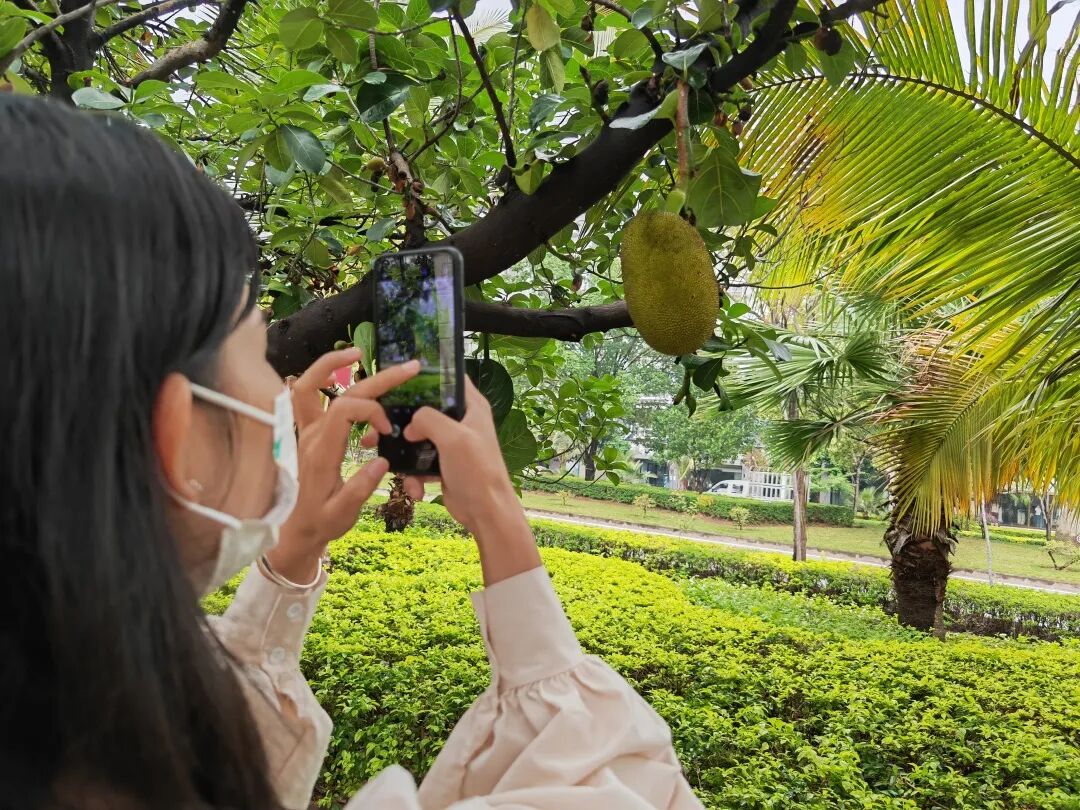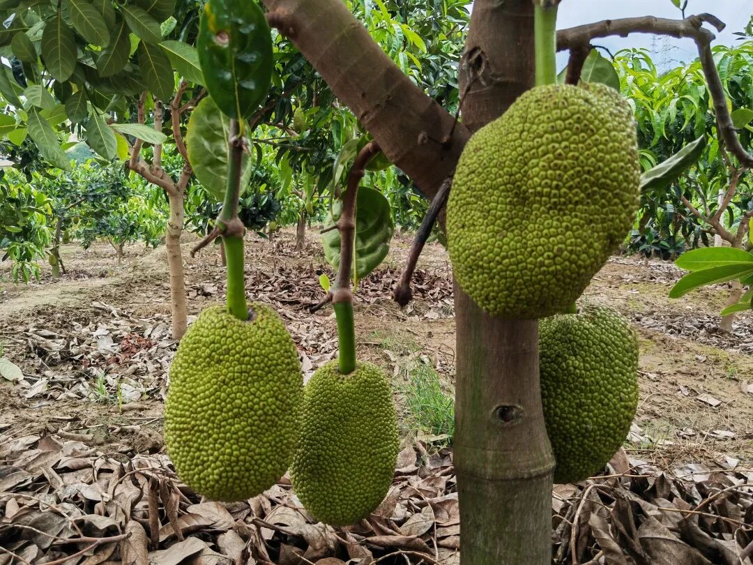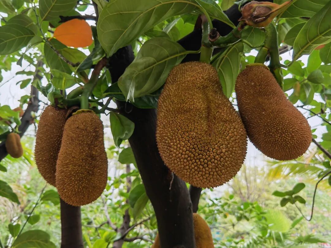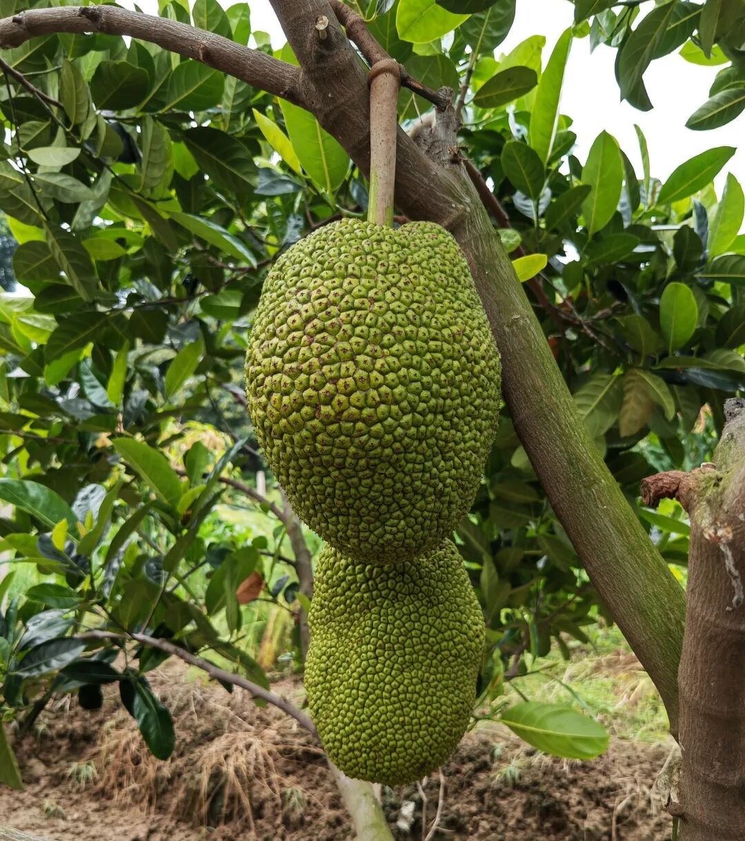大大的菠萝蜜长在枝干上,造型独特可爱,让人满心欢喜。
