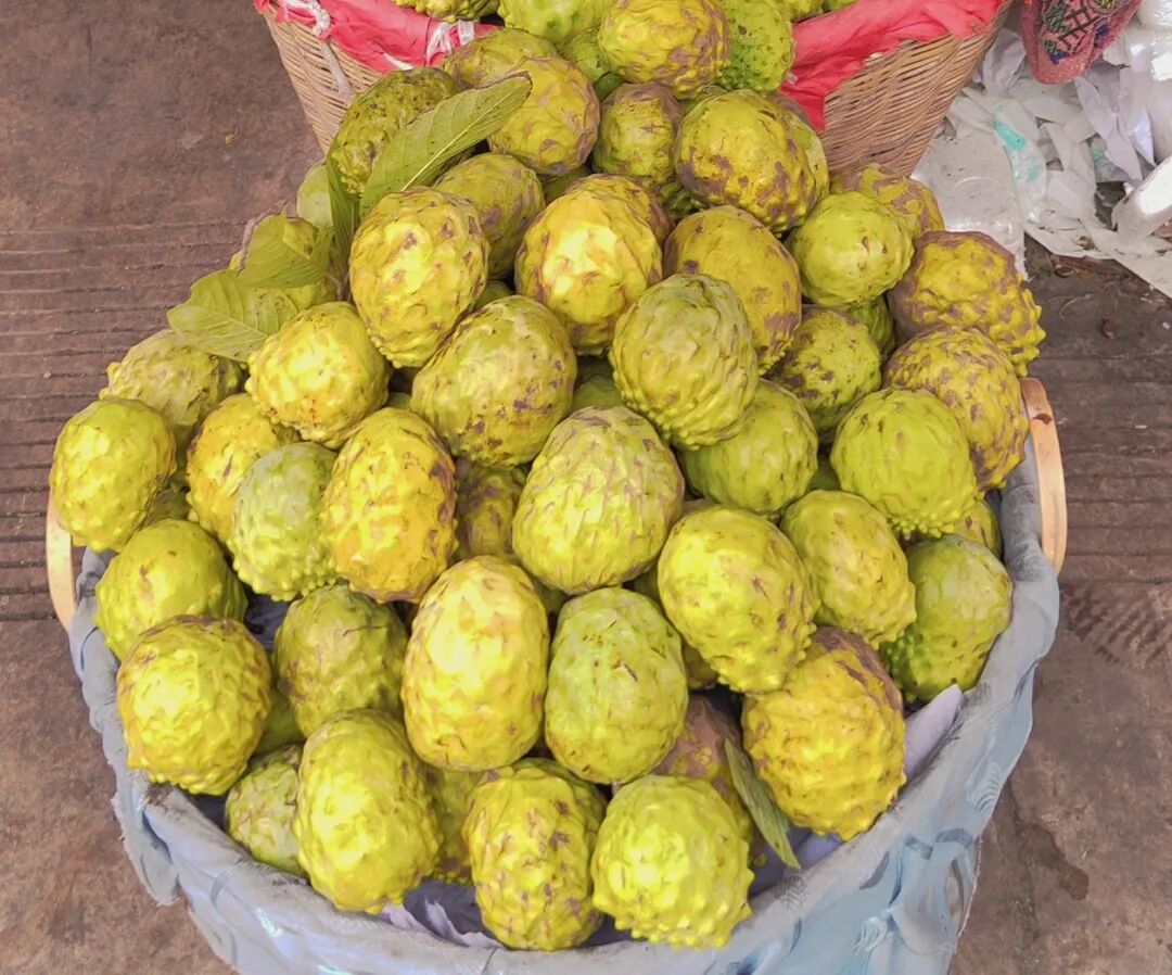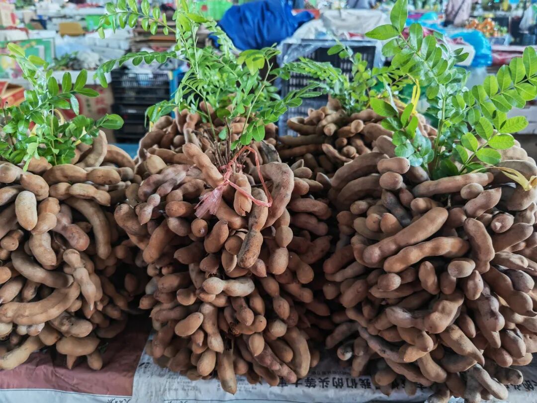 在农贸市场的水果摊位,各种当季水果正在热卖,沃柑、释迦果、鸡蛋果、酸角等本地水果很受欢迎,外地游客到了元江一定要把这些当季最新鲜的水果带回家。