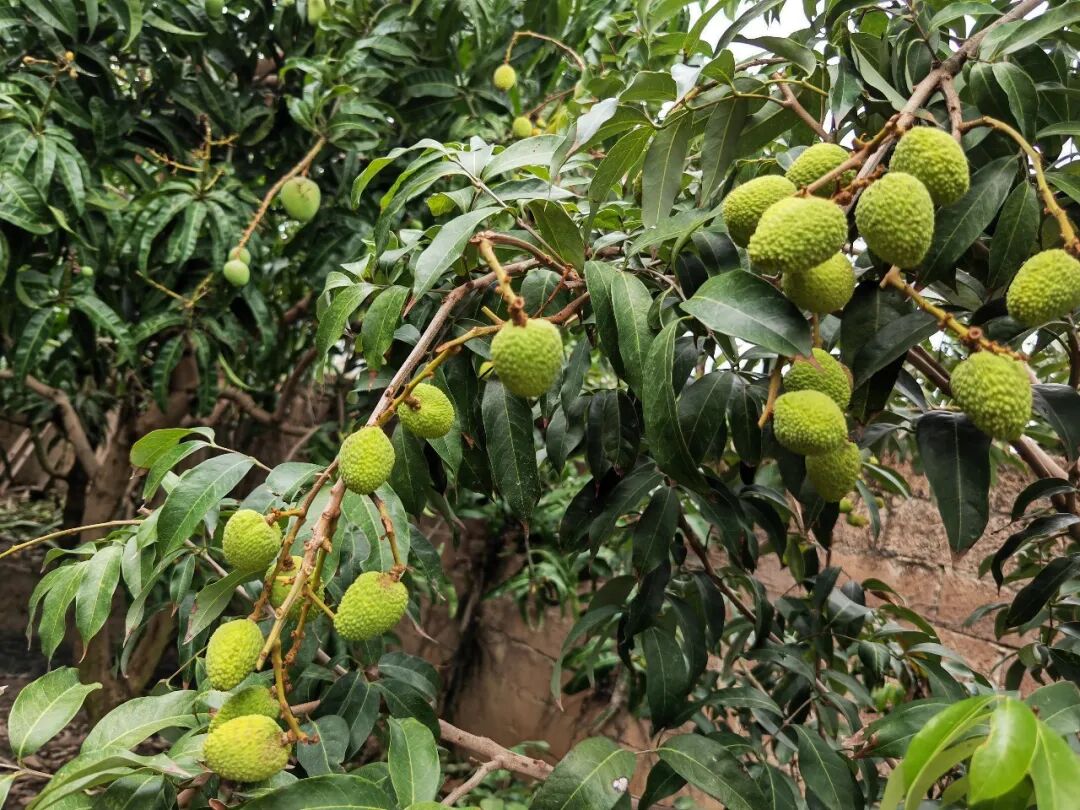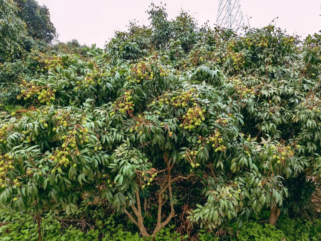 穿梭于菠萝蜜和荔枝种植地,青涩的荔枝挂满了枝头,数量多得数也数不过来。