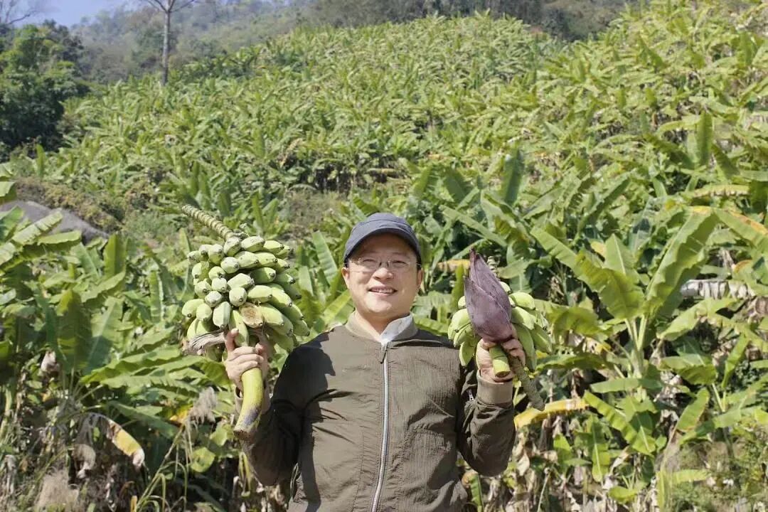 在元江县那整社区眷村的水果专业合作社,来自四川的创业青年张杨扎根元江发展有机农业已经有十一个年头了,看着地里栽种的“老实芭蕉”长势喜人,老张露出了开心的笑容。