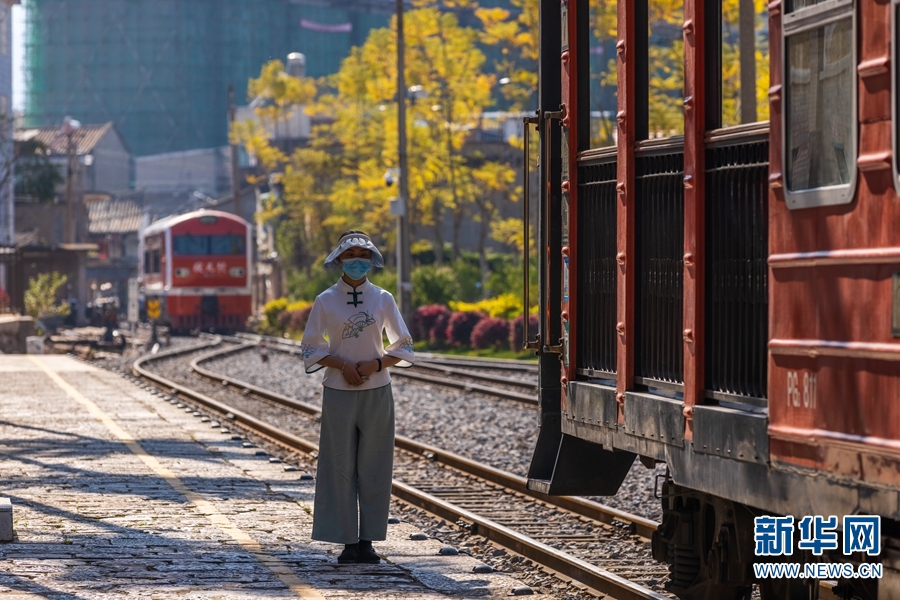 红色的“状元号”石屏米轨小火车