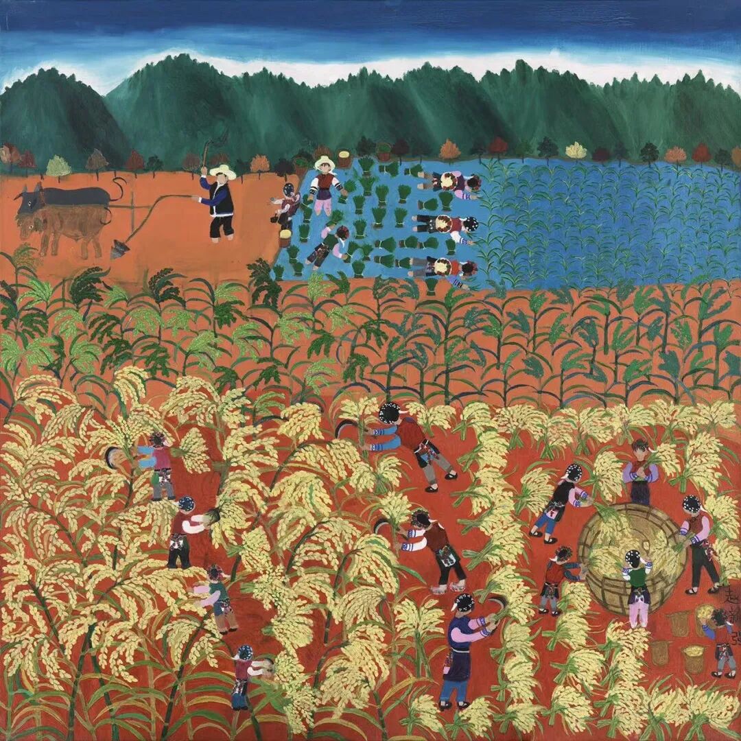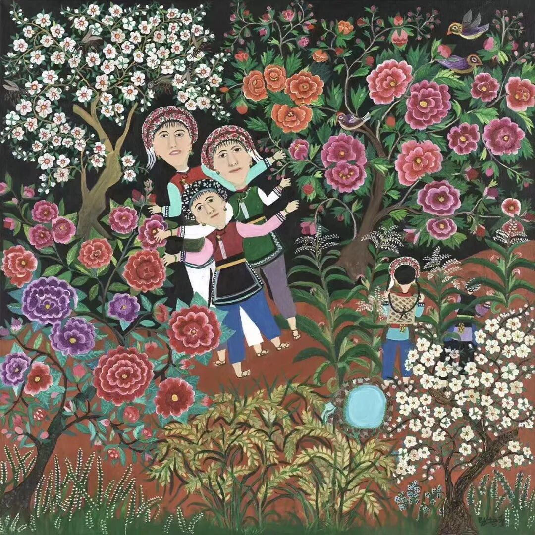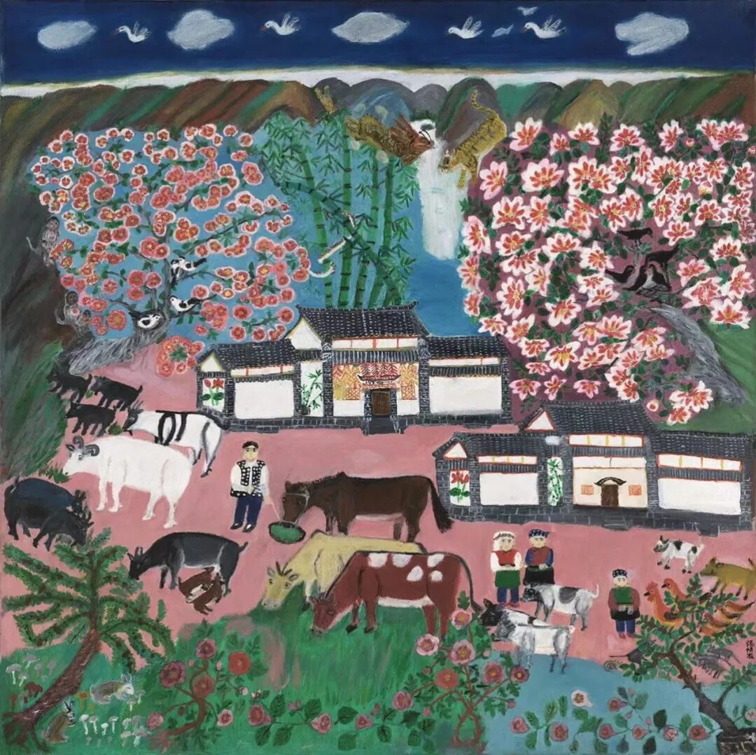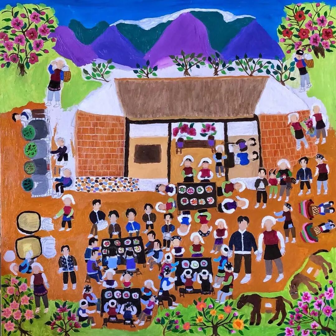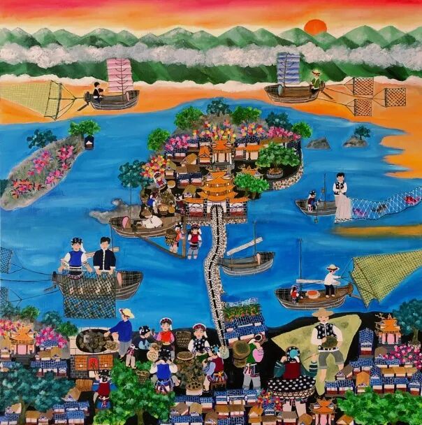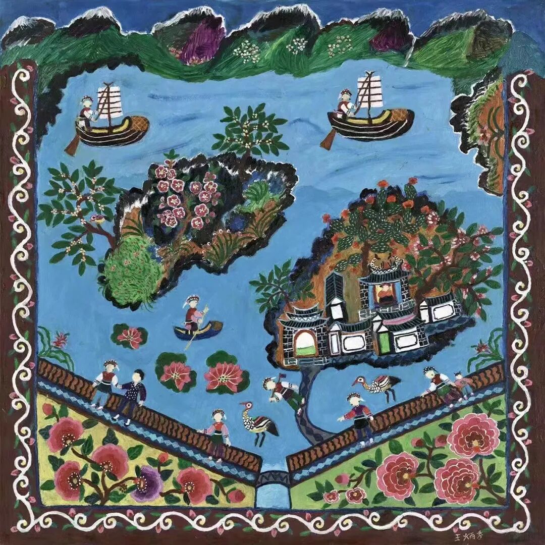 2011年,艺术家沈见华在大理双廊镇伙山村建立“双廊白族农民画社”,从那时起,先后有20多位白族老奶奶拿起画笔,用15000年前的笔触描绘生活。