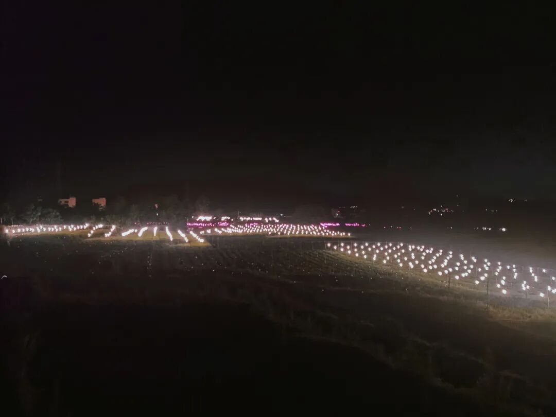 追随着这片“夜光花海”,我们走在通往小燕村的路上,到达目的地停下脚步放眼望去,成片的花海尽收眼底。点点光亮洒满了田野,赋予田野夜的灵气,花朵在灯光的照射下显现出不同的颜色,仿佛穿上了一身由星光而制的华丽纱裙,闪烁迷人。