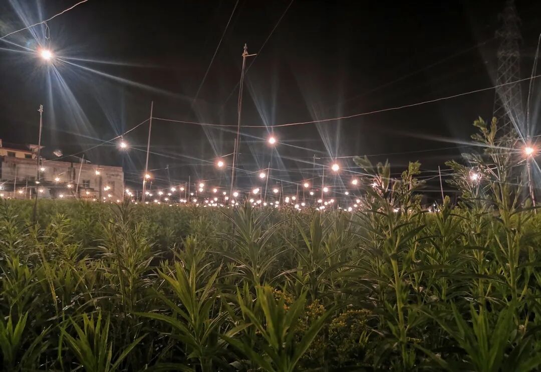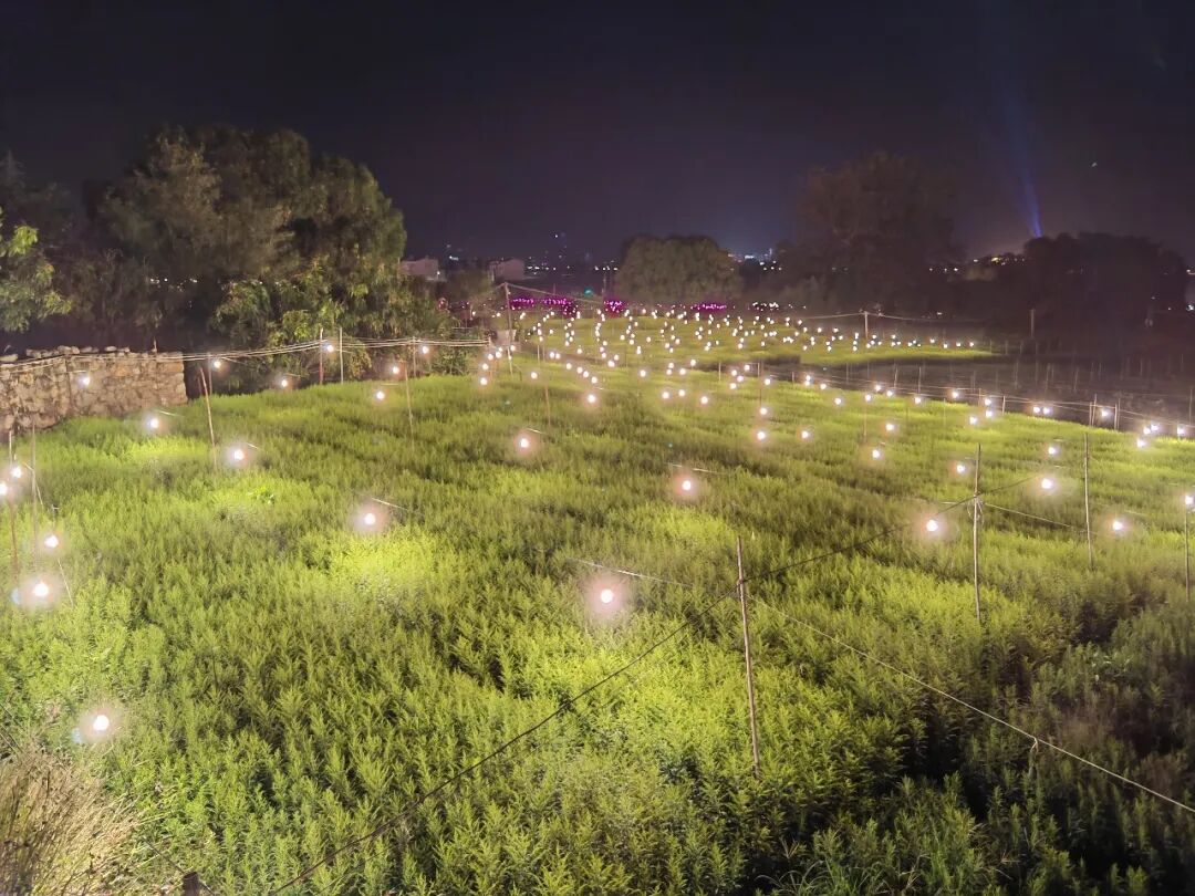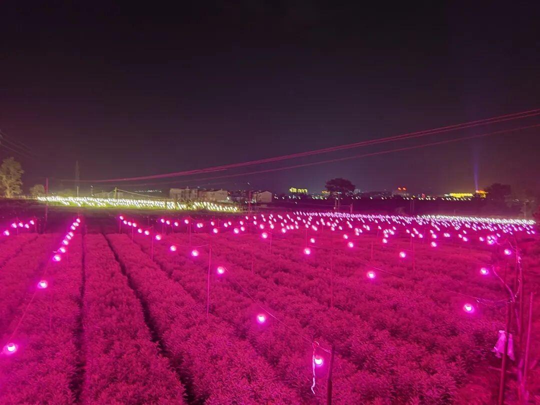 而夜晚看到的那些美丽“夜光”,就是田间的小灯泡发出的光亮。用灯泡给花朵电照补光,是为了充分发挥植物的光合作用,促进植物的快速生长。