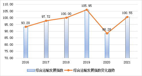 (△ 2016—2021年综合运输发展指数(TDI)变化图)