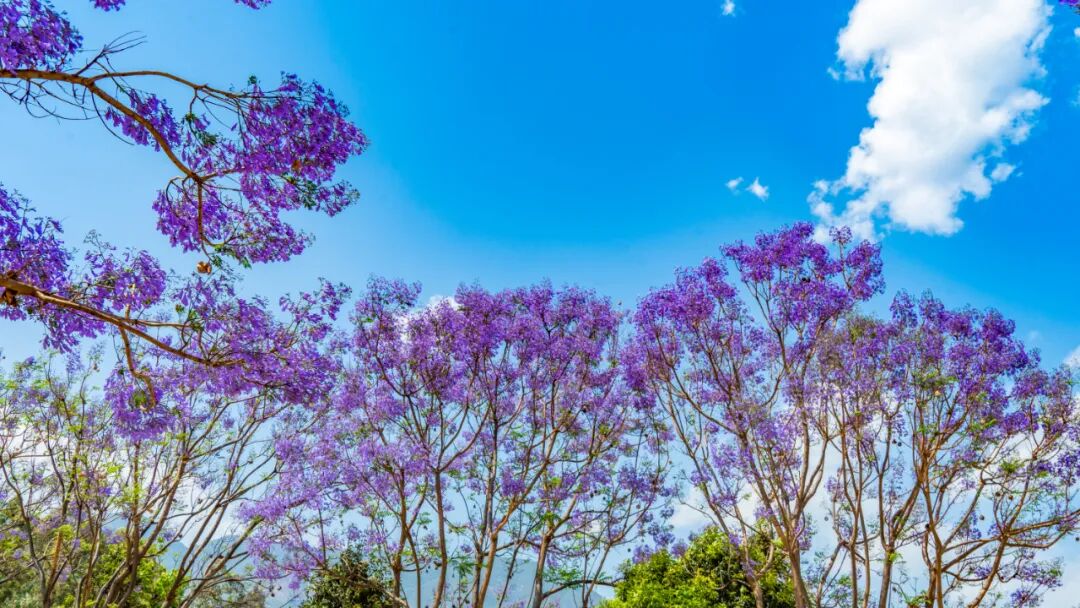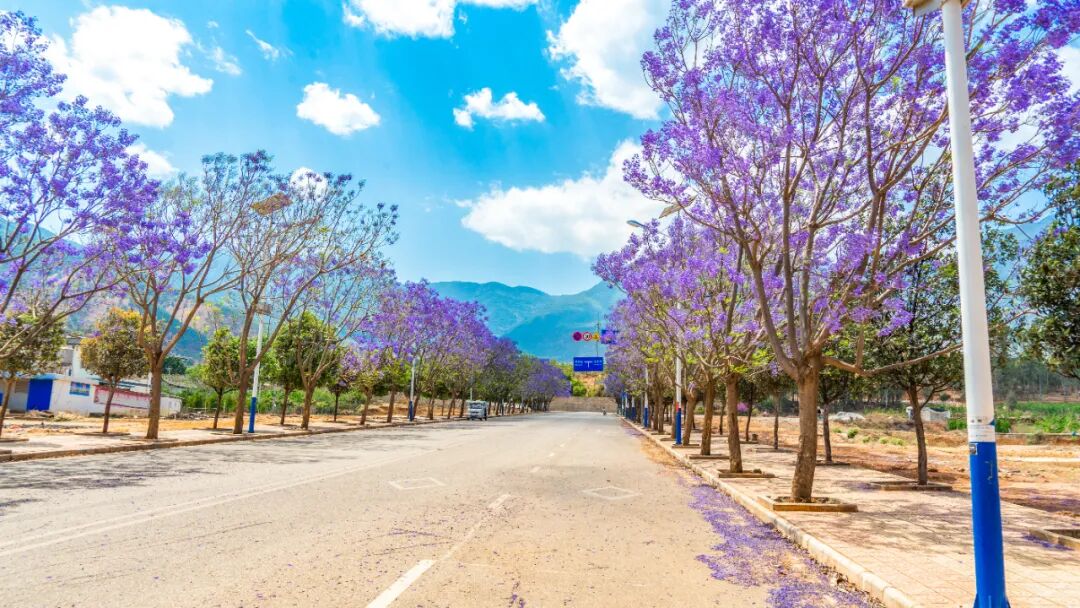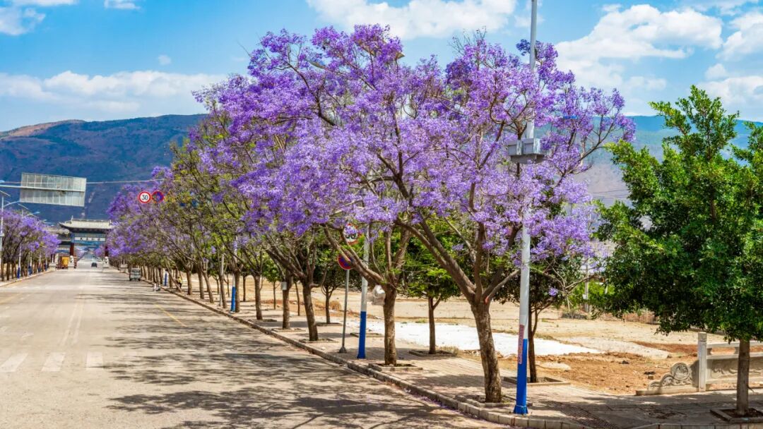 蓝花楹的花朵,清新脱俗、娇艳美丽,为前往边屯文化博物馆的大道增添了一层梦幻般的色彩。