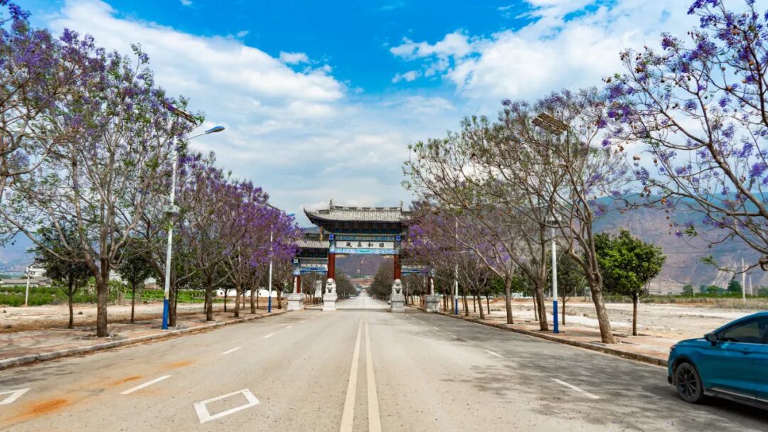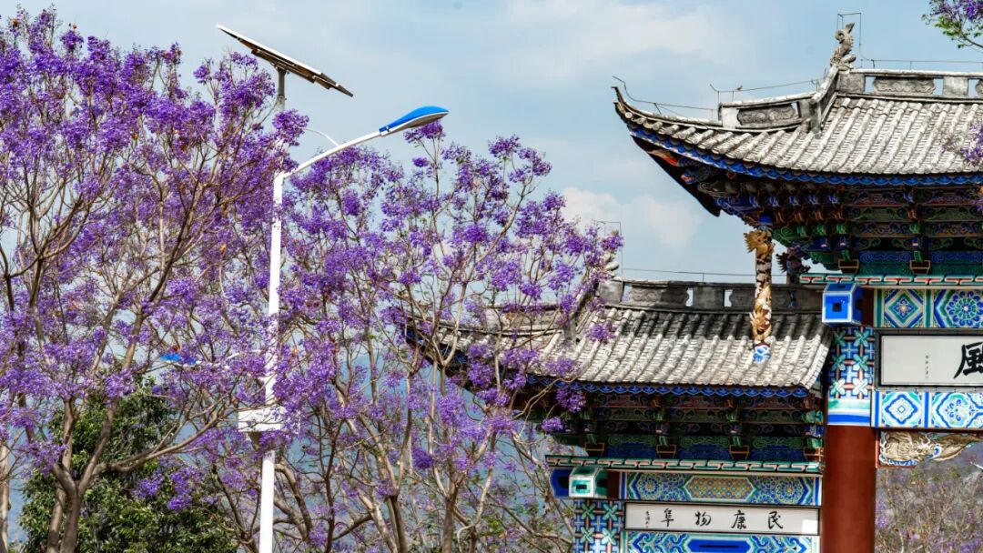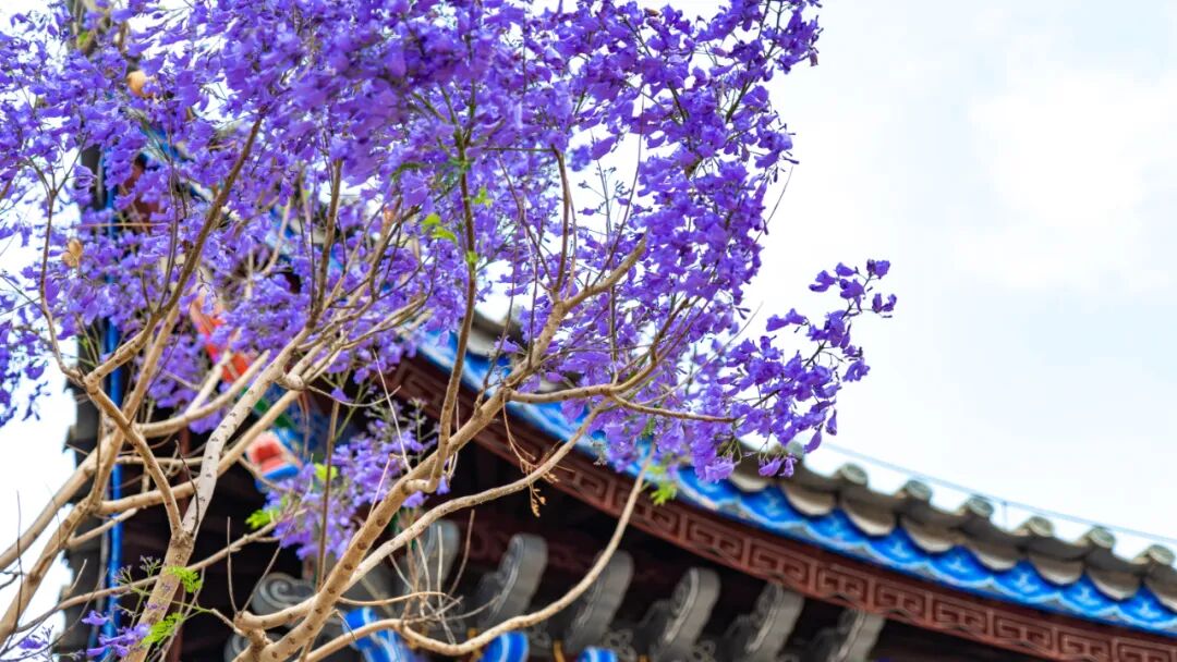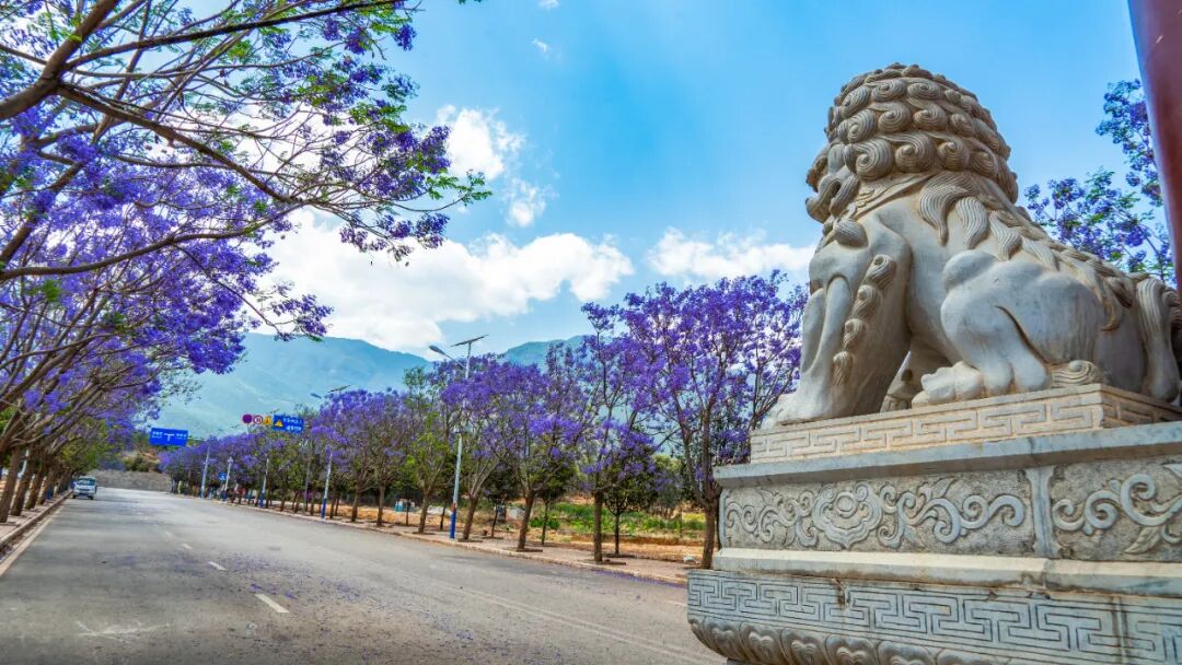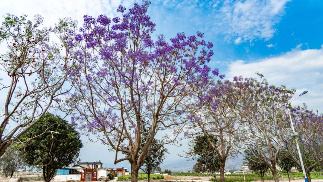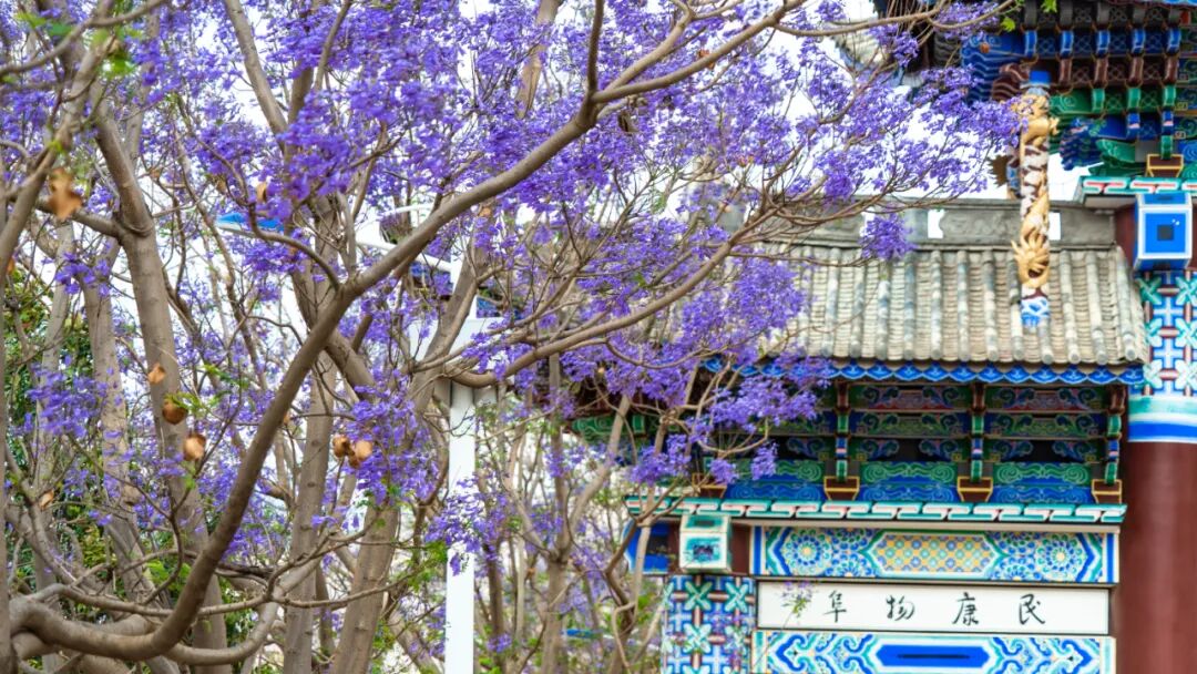 每年的蓝花楹盛开之际,就会引得周边游人前来观赏、拍照、打卡。在这里赏花,既可以与蓝花楹拍照留念,亦可前往边屯文化博物馆参观,了解永胜边屯名郡的历史。