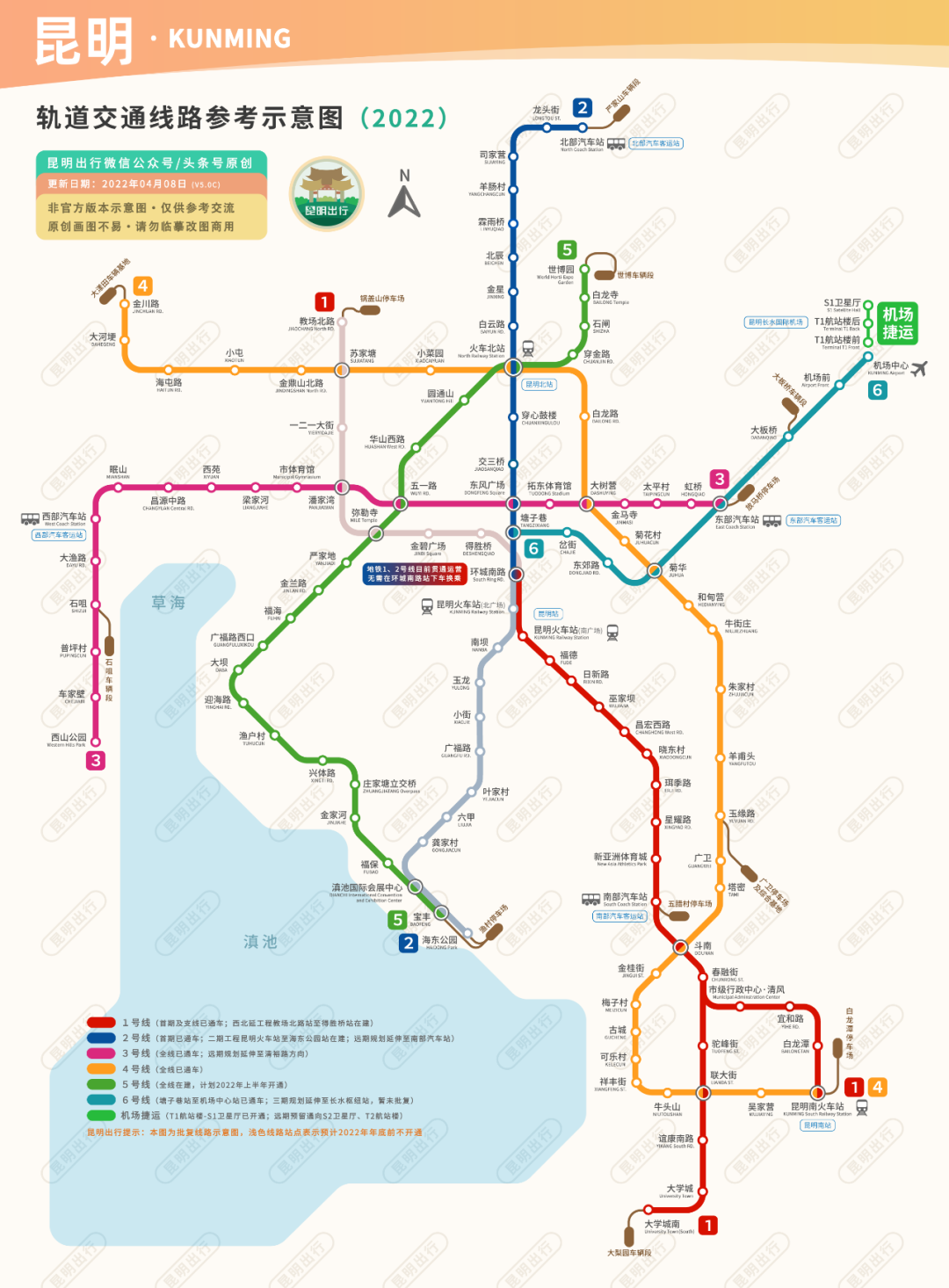 目前,昆明轨道交通在建线路共3条,分别为1号线西北延、2号线二期、5号线,在建总里程48.3公里、车站40座。正积极落实《2022年昆明市政府工作报告》要求,加快推进地铁1号线西北延、2号线二期建设,5号线上半年开通初期运营。截至2022年4月12日,各项目建设总体情况如下:
