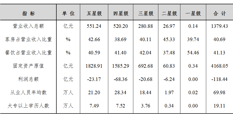 2021年度全国星级饭店主要指标统计表
