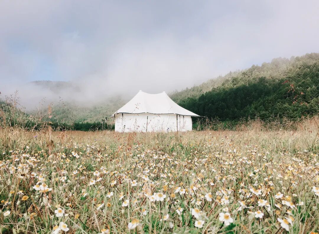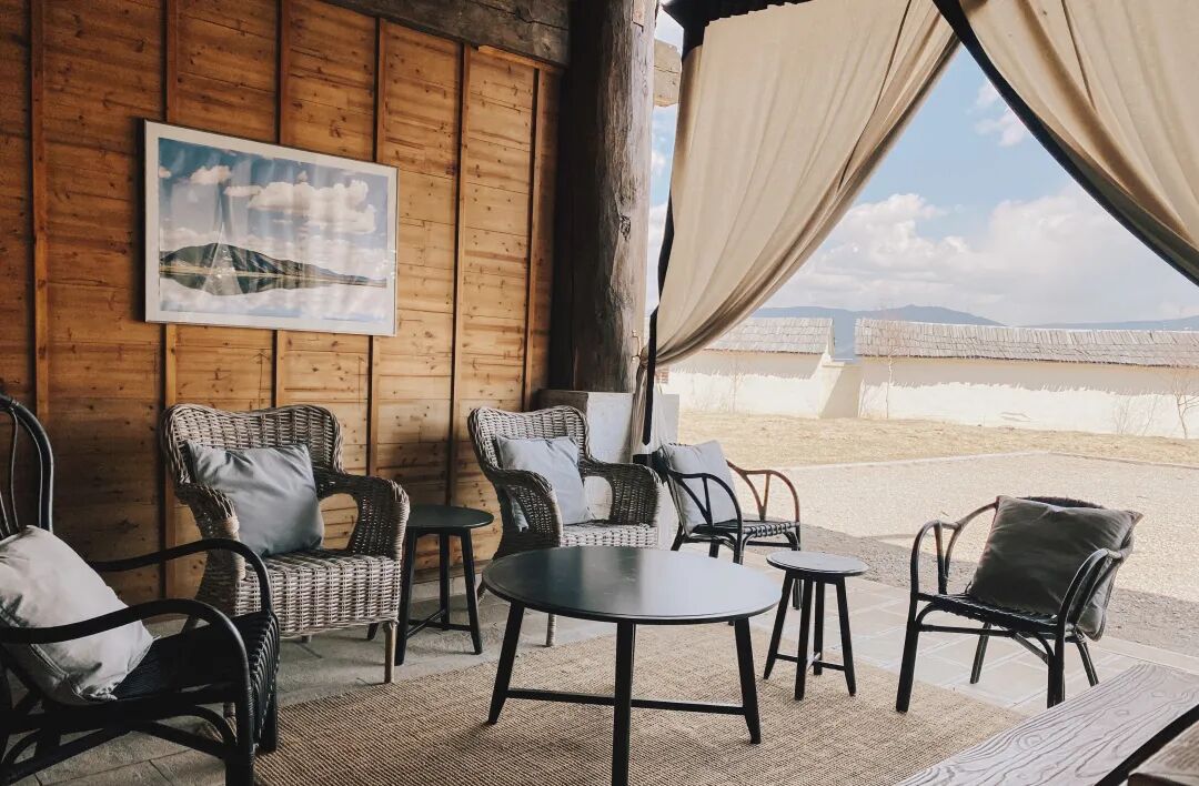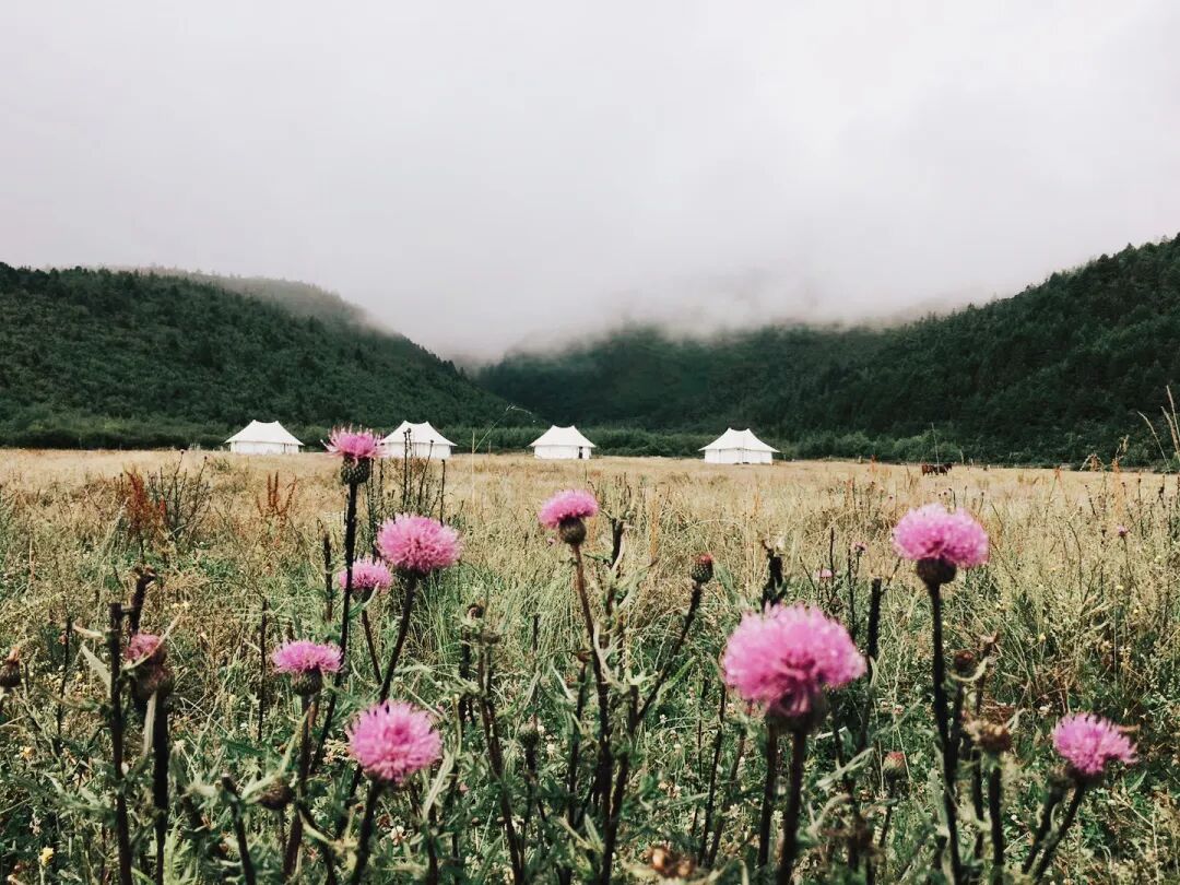 在气温怡人的春夏季,于帐篷前安个躺椅,坐在这里感受时光流逝,静静欣赏远处如水墨画一般的高原风光,这样的日子,安逸恬静。