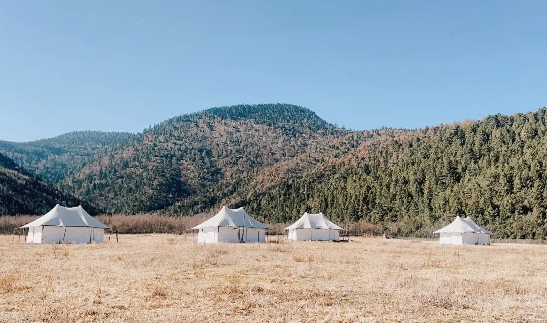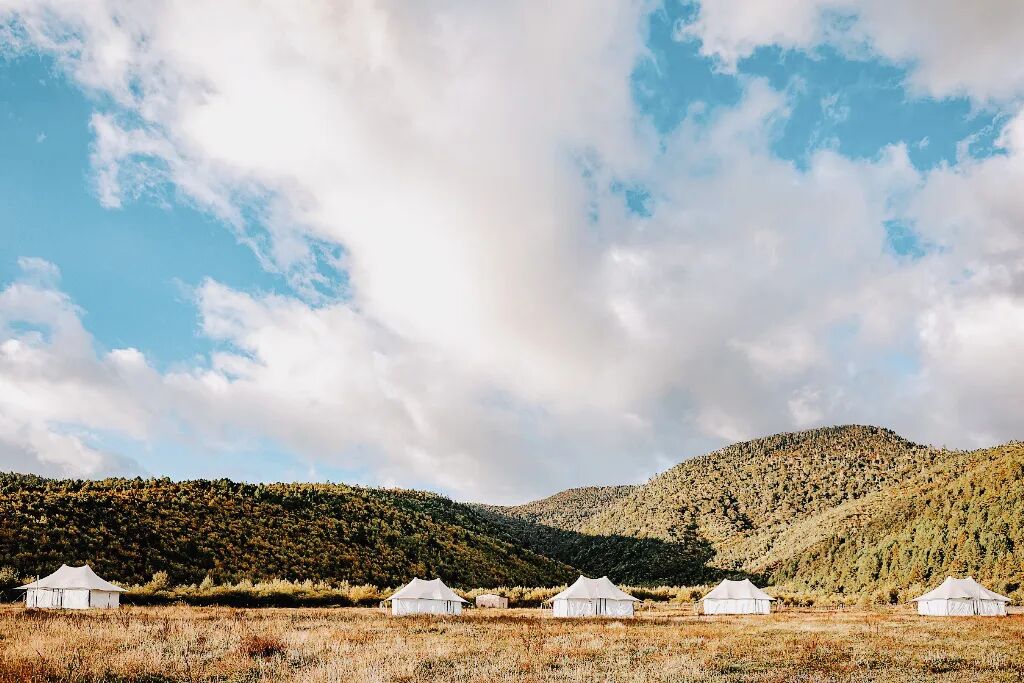 桃园藏居帐篷营地位于香格里拉藏族村落毕松山谷,“桃园藏居”四字寄托着的是世外桃源般的美。