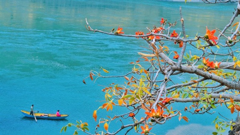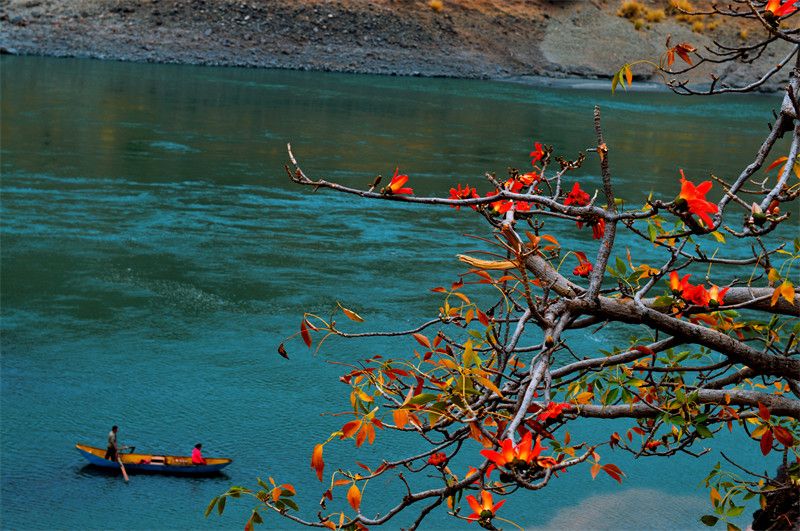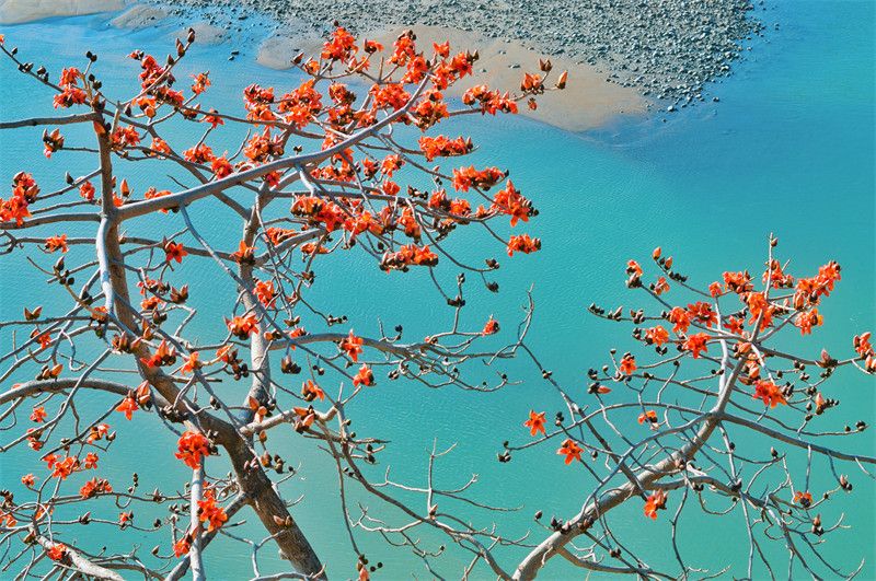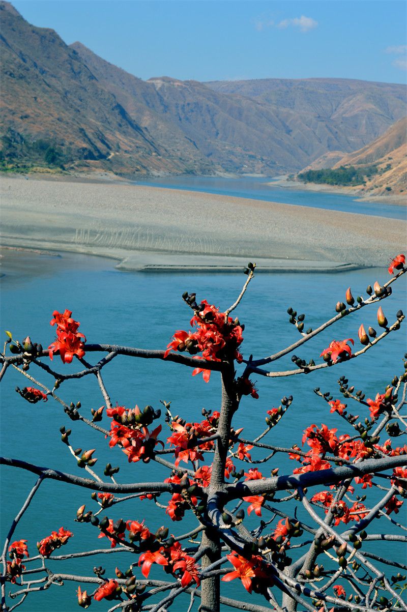 江畔火红的攀枝花