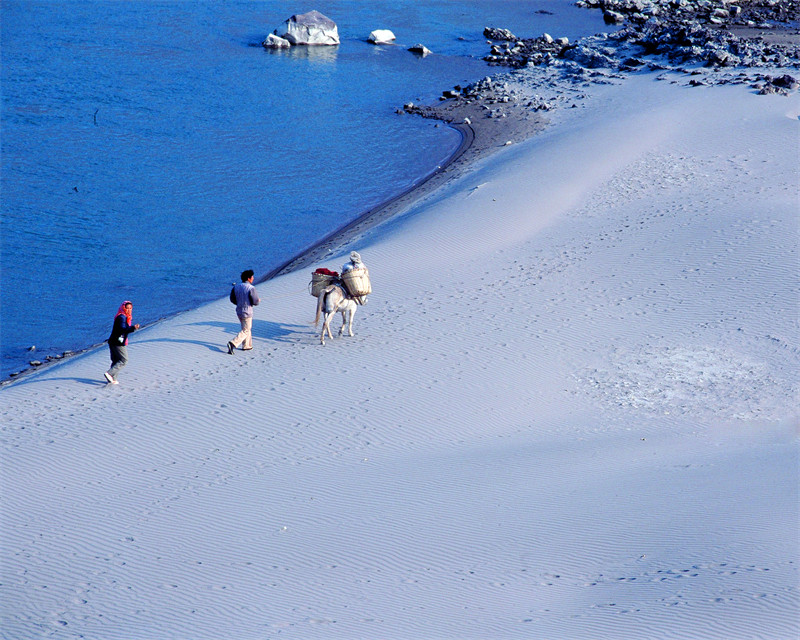 看那黄色高山和白色沙滩