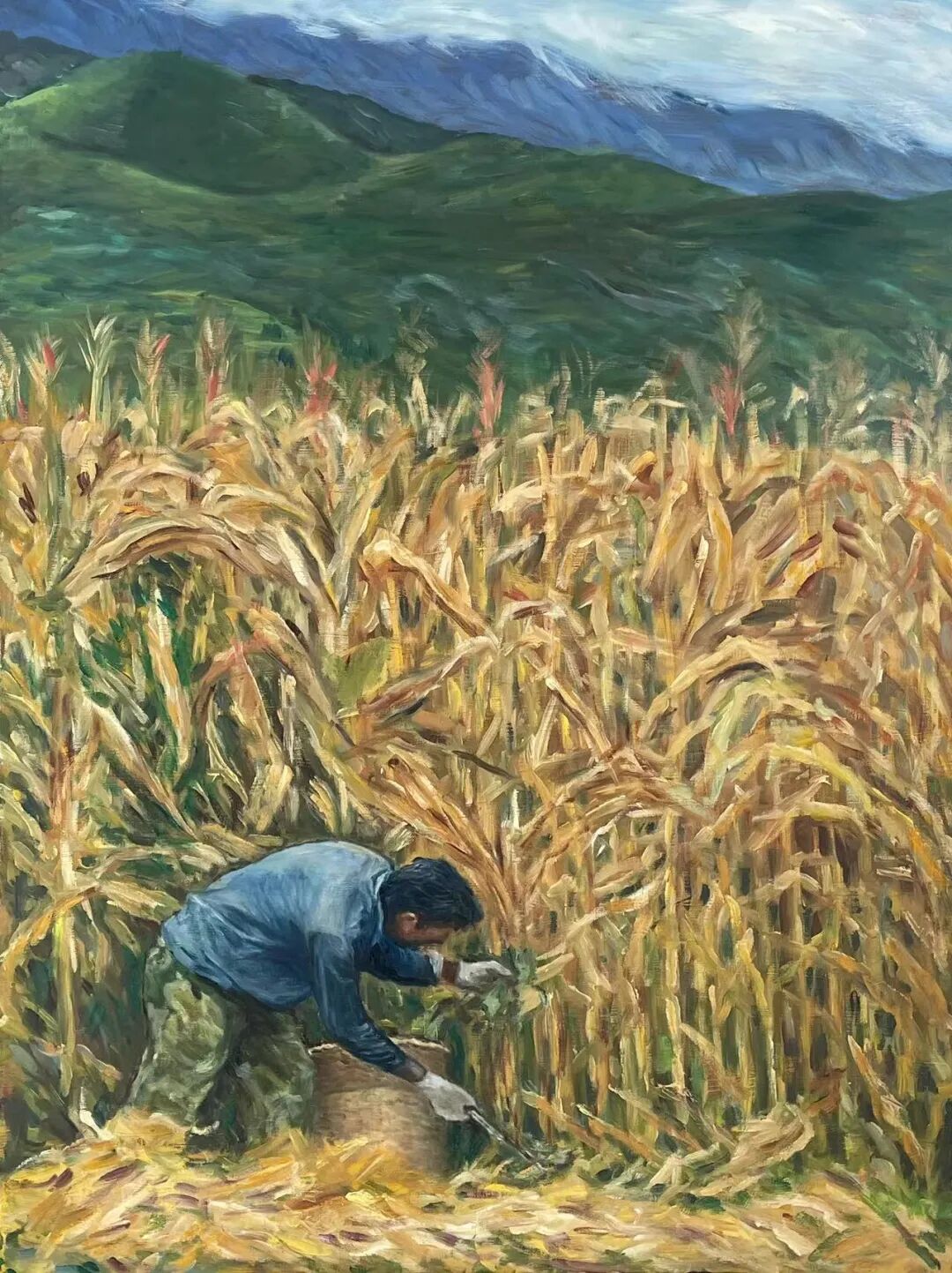 在凤羽画了三年,从最初的被自然风光吸引,想要把美画出来,传达出去,到现在他常常想怎样把自己在田间吸收到的能量通过绘画转换出去?通过绘画探索自然对人的意义。