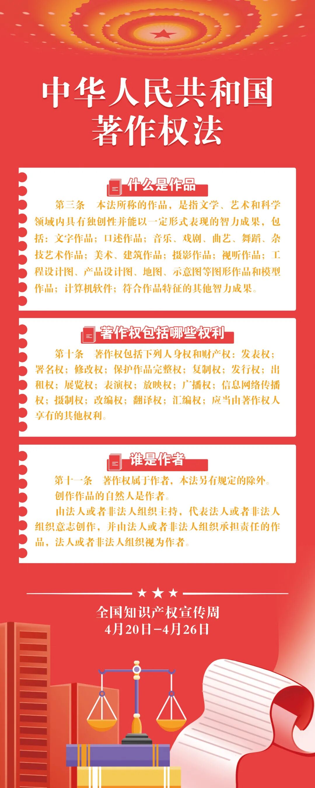 2022年4月26日是第22个世界知识产权日。今年的全国知识产权宣传周活动于4月20日至26日开展,主题为“全面开启知识产权强国建设新征程”。文化和旅游系统要以习近平新时代中国特色社会主义思想为指导,深入贯彻落实习近平总书记关于知识产权工作的重要论述和指示批示精神,紧扣《知识产权强国建设纲要(2021一2035年)》《“十四五”国家知识产权保护和运用规划》等推进实施,开展文化和旅游领域知识产权宣传活动,为推动文化和旅游高质量发展营造良好舆论氛围。