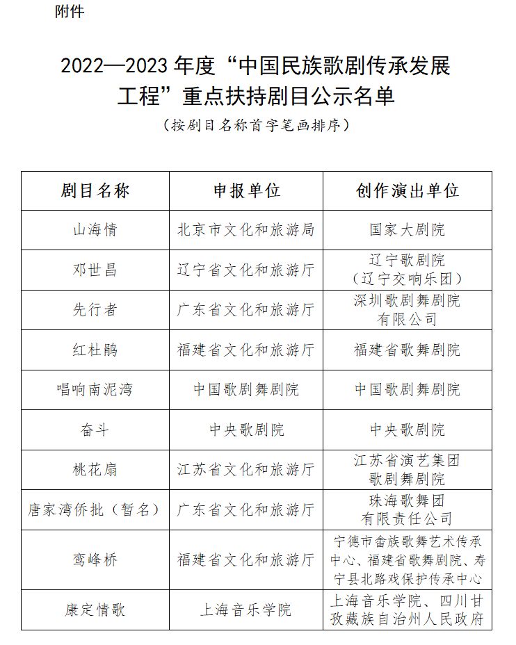 ※2022—2023年度“中国民族歌剧传承发展工程”重点扶持剧目遴选结果公示!