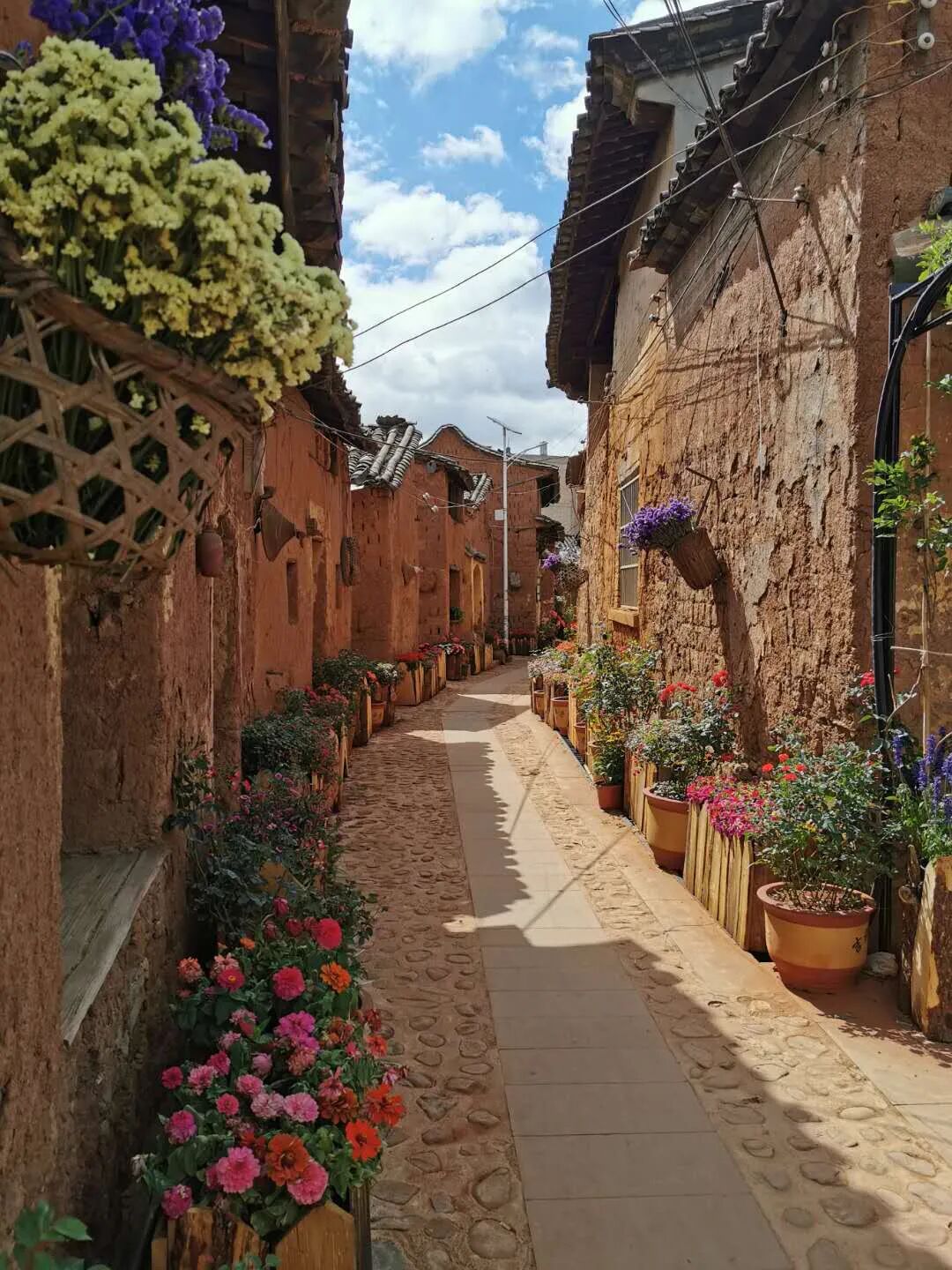 喀卓百花巷内百花争艳,栽种百花的木盆、古朴的土坯房和鹅卵石的小路筑成了一道古朴的风景线。在如此优美的环境中漫步是一件令人期待的事情!