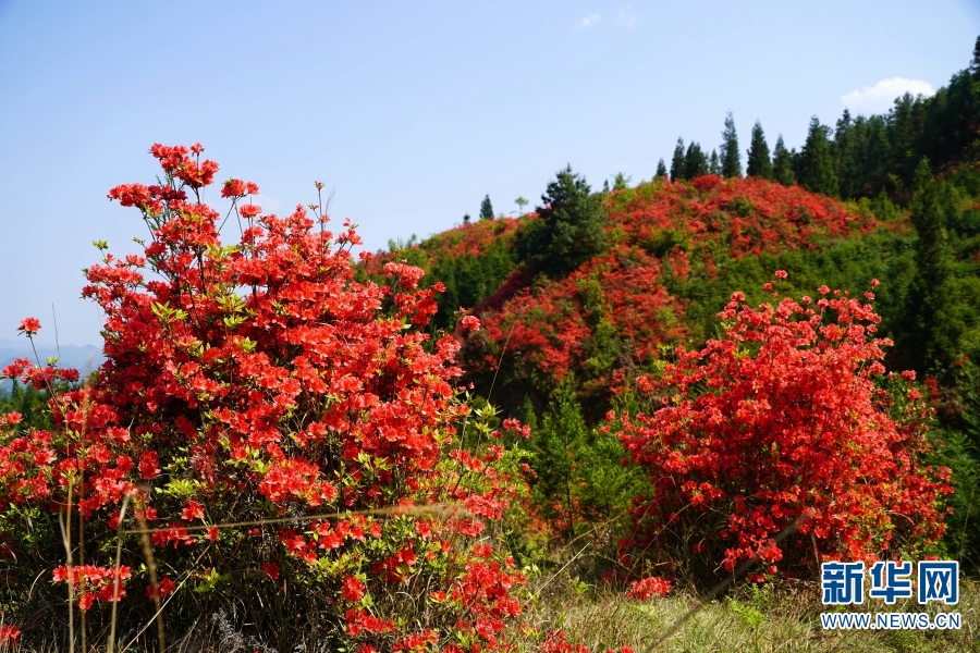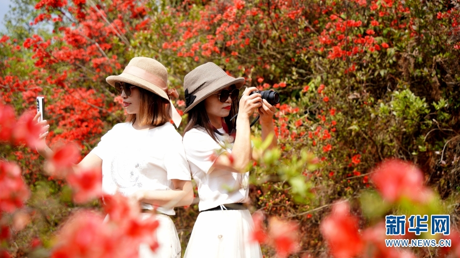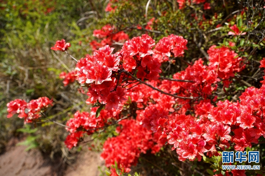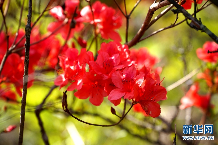 红艳似火的杜鹃花(4月13日摄)。新华网发(吴振坤 摄)