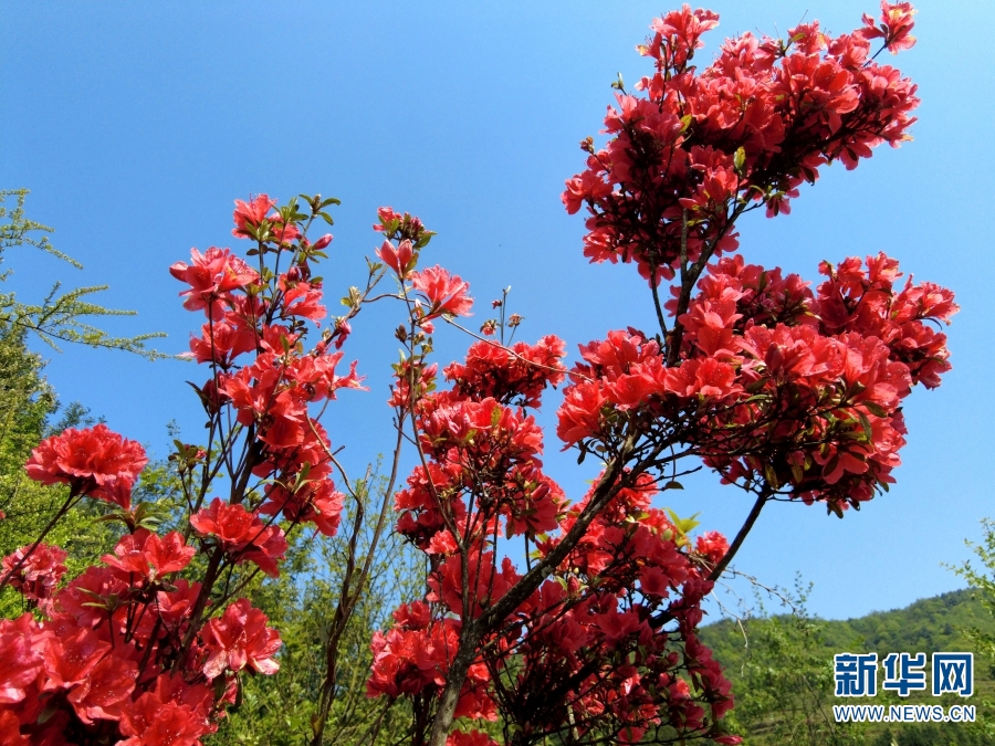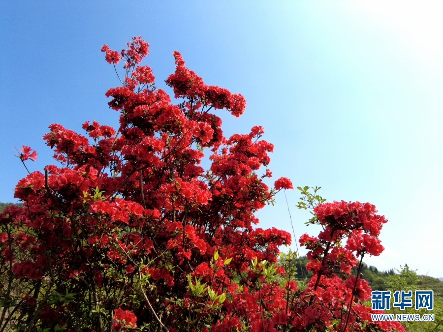 蓝天下的杜鹃花(4月13日摄)。新华网发(吴振坤 摄)