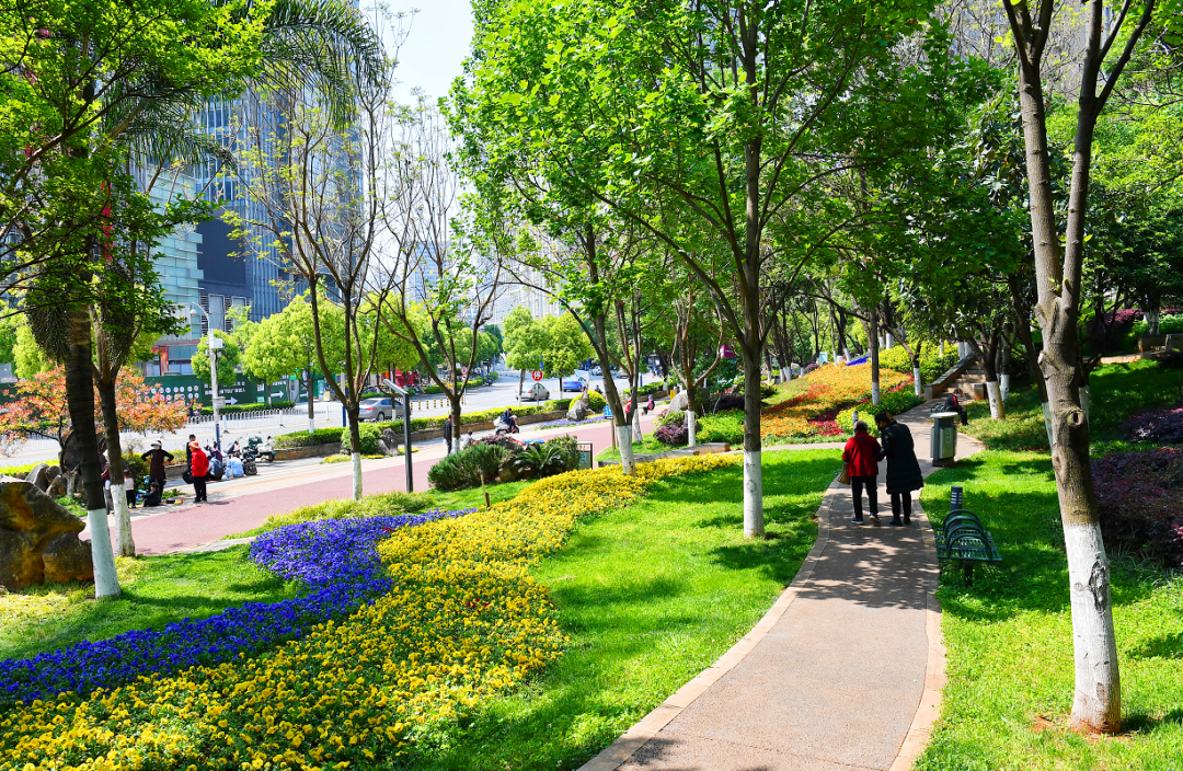 加强中国昆明立体花坛大赛作品后期维护管养。推进“千树复壮,春城添彩”工作,全面提升城市绿化管养品质,每年在城市道路、公园绿地、小游园及城市广场范围内增补乔木不少于3万株。