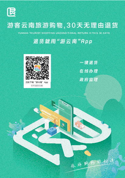 在旅游行程中如遇旅游质量纠纷时,旅游者应冷静对待,坚持理性诉求,不宜采取过激行为扩大事态或激化矛盾,注意留存证据,依法合理维权。云南省实行“30天无理由”退货,如果您在玉溪市期间对所购的旅游商品不满意,自购买之日30天内,达到退货条件,凭有效凭证,可申请无理由退货。在玉溪市辖区内购买的旅游商品,退货详情可拨打旅游投诉(咨询)电话,还可扫描“游云南”APP二维码,在平台发起退货申请,将有专门的工作人员为您服务。